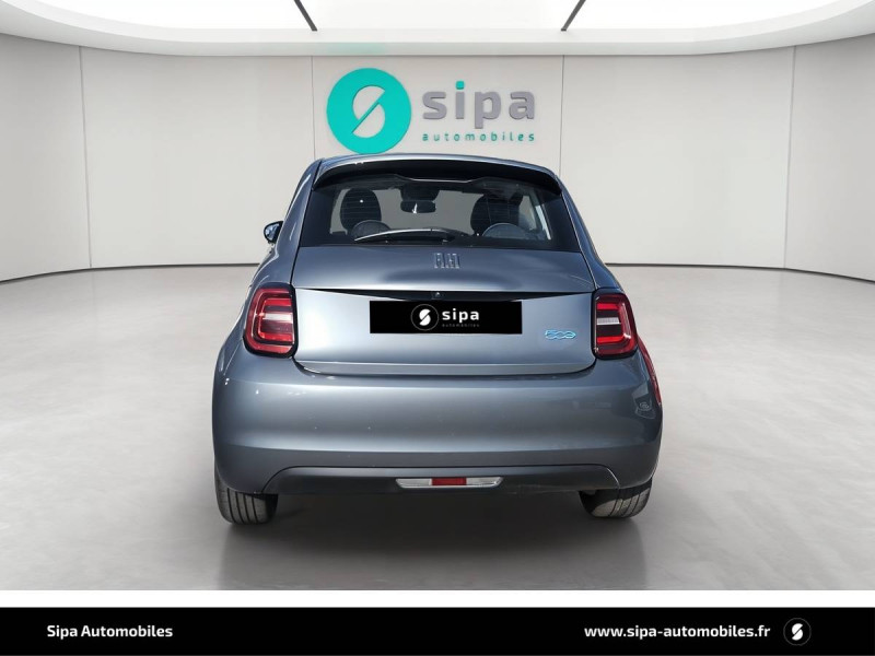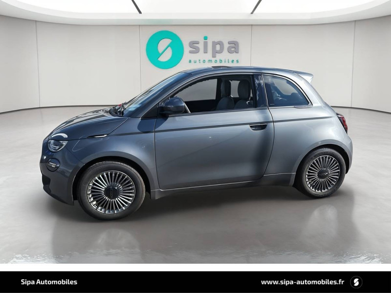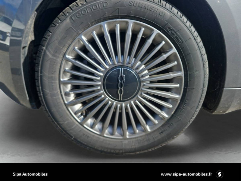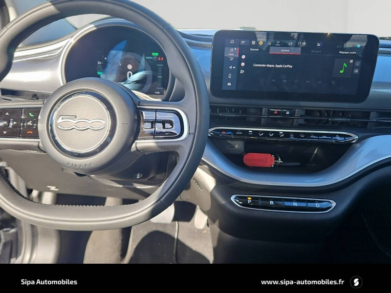 ABS - antiblocage des roues avec répartiteur de freinage EBD / Câble de recharge Mode 3 / Chargeur embarqué 11 kW triphasé / Coques de rétroviseurs couleur carroserie / Détails chromés : logo 500 sur calandre et logo FIAT sur hayon / ESP - Contrôle électronique de stabilité avec aide au démarrage en côté "Hill Holder" / Freinage autonome d'urgence avec détection de piéton et de cycliste / Frein à main électrique / Limiteur de vitesse intelligent avec reconnaissance des panneaux / Mopar Connect Box / Pare-chocs peints couleur carrosserie / Poignées de portes dissimulées / Prise charge rapide (85kW) / Système d'alerte sonore au piéton / Système d'infodivertissement Uconnect 10,25'? avec navigation