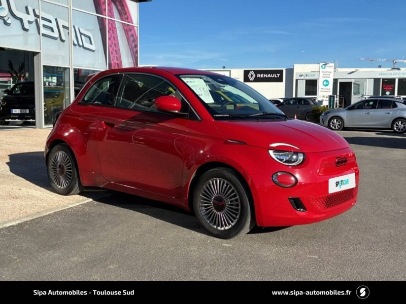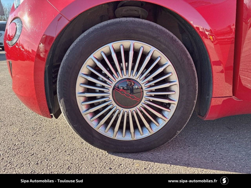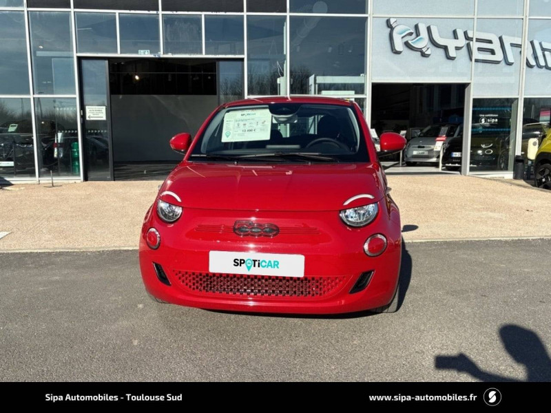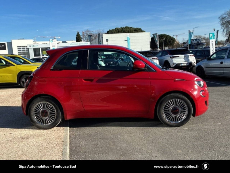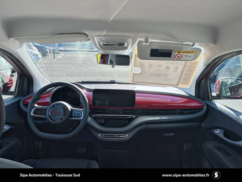 ABS - antiblocage des roues avec répartiteur de freinage EBD / Boîte à gants désinfectante avec lampe UV-C / Câble de recharge Mode 3 / Chargeur embarqué 11 kW triphasé / Contours de vitres chromés / Coques de rétroviseurs extérieurs rouges / Détails chromés : logo 500 sur calandre et logo FIAT rouges sur hayon / ESP - Contrôle électronique de stabilité avec aide au démarrage en côté "Hill Holder" / Freinage autonome d'urgence avec détection de piéton et de cycliste / Frein à main électrique / Kit (RED) :coque de clé, filtre à air, traitement antimicrobien, tapis de sol, distributeur poussoir / Limiteur de vitesse intelligent avec reconnaissance des panneaux / Mopar Connect Box / Pare-chocs peints couleur carrosserie / Poignées de portes dissimulées / Prise charge rapide (50kW) / Sellerie Tissu Seaqual avec monogramme Fiat + Planche de bord rouge / Système d'alerte sonore au piéton / Système d'infodivertissement Uconnect 10,25'? avec navigation / Tapis de sol