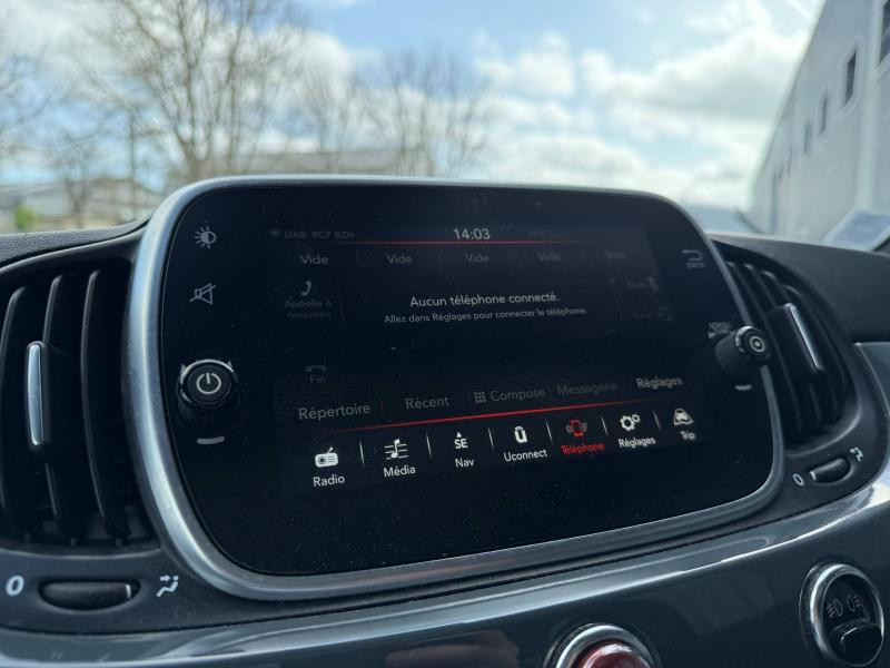 Bacs de portes avant / Banquette 50/50 / Blocage électronique du différentiel / Boucliers AV et AR couleur caisse / Commandes vocales / Compte tours / Direction assistée asservie à la vitesse / Echappement à double sortie / Filtre à Pollen / Lampe de coffre / Pommeau de levier vitesse en cuir / Porte-gobelets arrière / Porte-gobelets avant / Prise auxiliaire de connexion audio / Sortie d'échappement chromée / Suspensions Sport / Système facilitant l'accès aux places AR / Tablette cache bagages / Température extérieure / Tissu Abarth Noir / Verrouillage auto. des portes en roulant / Antenne radio cachée avec bouchon alu gravé 595 sur le toit (option inclus) / Capteurs de pluie et de luminosité (option inclus) / Jantes alliage 17 Touring (option inclus) / Peinture pastel extra-série Gris Pista (option inclus) / Radar de recul (option inclus) / Toit ouvrant électrique panoramique Skydome avec rideau pare-soleil (option inclus) / Uconnect 7'' HD Nav LIVE + Apple CarPlay et Android Auto (option inclus) / Pack + : Toit ouvrant électrique panoramique Skydome avec rideau pare-soleil, Antenne radio cachée avec bouchon alu gravé 595 sur le toit, Capteurs de pluie et de luminosité (option inclus) /