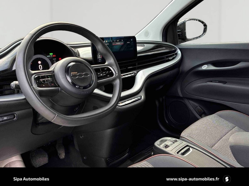 Câble mode 2 (2,3 kW) / Chargeur à induction pour smartphone / Clé spécifique en forme de galet / Feux croisement/route automatique / Freinage autonome d'urgence avec détection de piéton et de cycliste / Frein à main électrique / Garantie 2 ans / Garantie batteries 42 kW : 8 ans ou 160 000 km / Ouverture sans clé / Pack Avantage / Pack Magic Eye / Prise charge rapide (85kW) / Rétroviseur intérieur photochromatique / Services connectés via application smartphone / Seuils de portes / Système Audio à 4 haut-parleurs / Système Uconnect 10,25'' avec navigation / Tapis de sol AV/AR avec logo 500 / Vitres full électriques ouverture/fermeture par télécommande