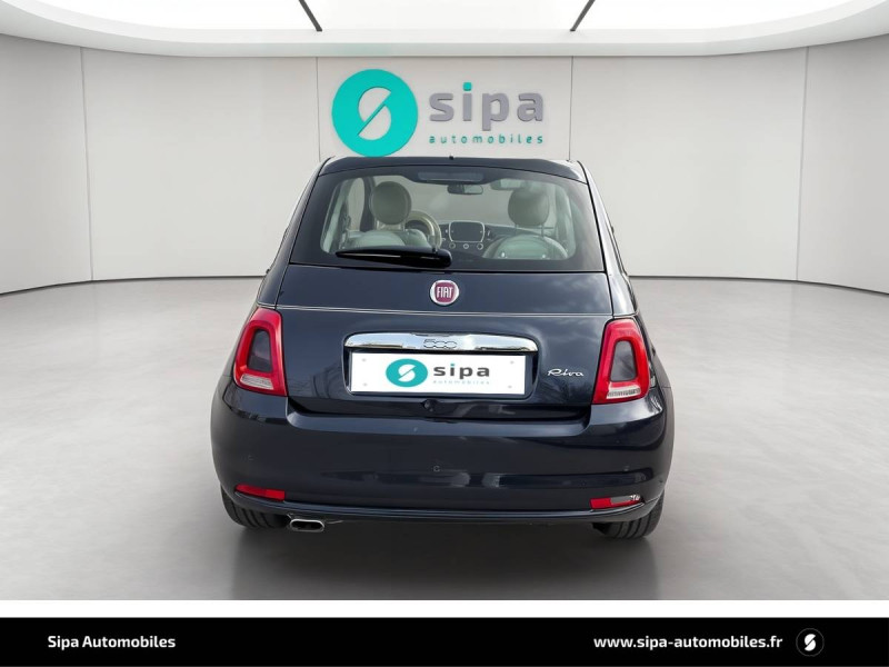 ABS - antiblocage des roues avec répartiteur de freinage EBD / Badge Riva spécifique sur les ailes AV et le hayon / Baguettes latérales couleur carrosserie (inclus logo 500) / Ceintures de sécurité spécifiques au design Bi-Color / Coques de rétroviseurs, poignées de porte et moulure sur le capot chromées / Direction assistée "DualDrive" et fonction "city" / Ecran digital TFT 7" personnalisé Riva / ESP - Contrôle électronique de stabilité avec aide au démarrage en côté "Hill Holder" / Jantes alliage de 16" spécifiques avec finition bleu / Liner spécifique bleu "Acquamarina" / Logo Riva en teinte Sera Blue cousu sur les sièges AV / Panneaux de porte couleur ivoire / Peinture métallisée exclusive Sera Blue / Poignée de maintien intérieure / Pommeau de levier de vitesses en bois / Rétroviseurs extérieurs électriques, dégivrage et capteur de temperature extérieure / Sellerie en Cuir pleine fleur ivoire avec passepoils Sera Blue / Seuils de porte avec inserts en bois / Tableau de bord fait main en acajou avec logo Riva / Tapis de sol spécifiques Velours/PVC / Uconnect Radio 7" NAV LIVE (Dual Tuner/USB/AUX/Bluetooth) / Volant gainé de cuir avec commandes radio