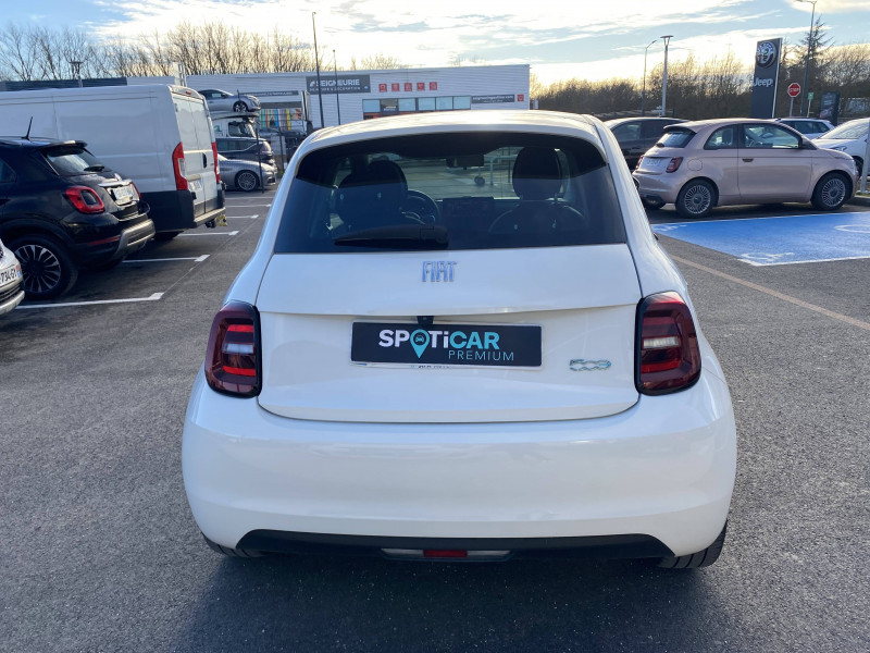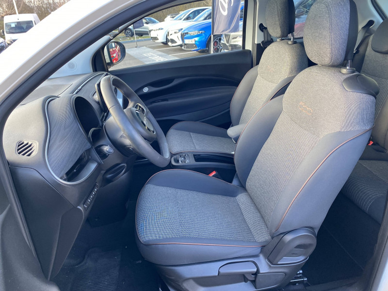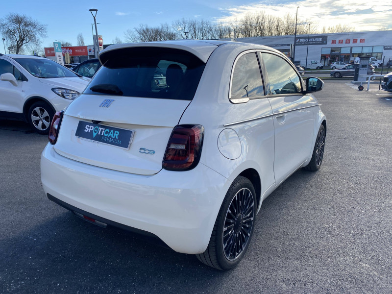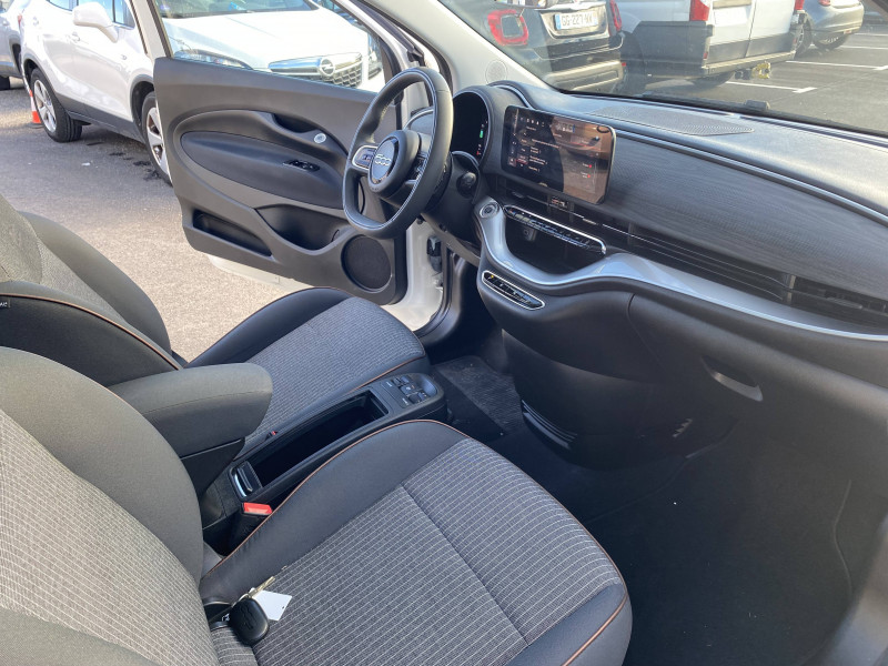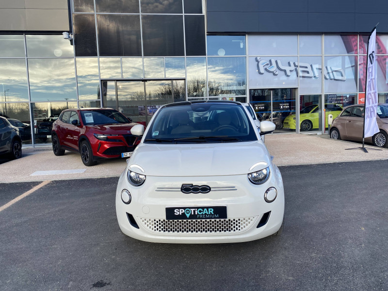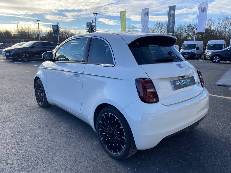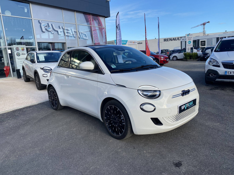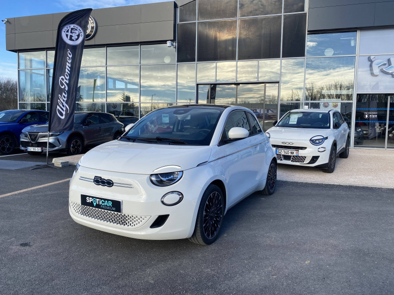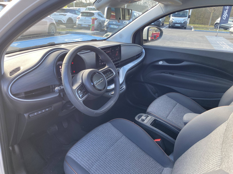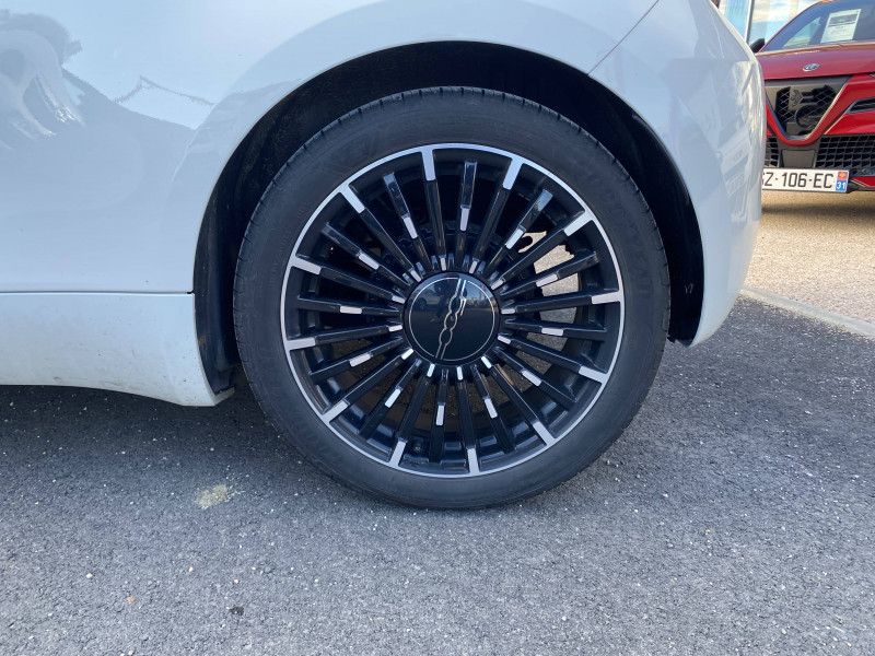 ABS - antiblocage des roues avec répartiteur de freinage EBD / Câble de recharge Mode 3 / Chargeur embarqué 11 kW triphasé / Coques de rétroviseurs couleur carroserie / Détails chromés : logo 500 sur calandre et logo FIAT sur hayon / ESP - Contrôle électronique de stabilité avec aide au démarrage en côté "Hill Holder" / Freinage autonome d'urgence avec détection de piéton et de cycliste / Frein à main électrique / Limiteur de vitesse intelligent avec reconnaissance des panneaux / Mopar Connect Box / Pare-chocs peints couleur carrosserie / Poignées de portes dissimulées / Prise charge rapide (85kW) / Système d'alerte sonore au piéton / Système d'infodivertissement Uconnect 10,25'? avec navigation