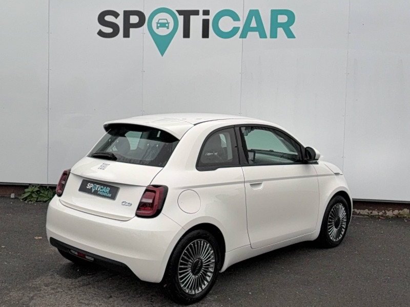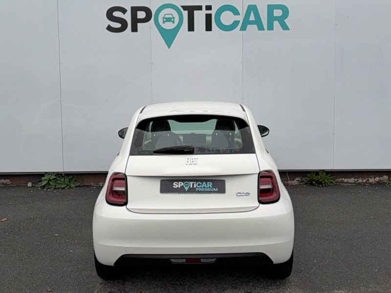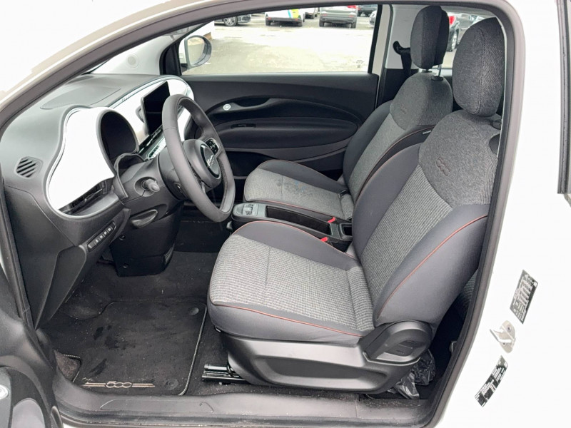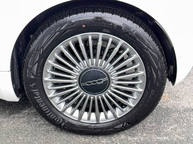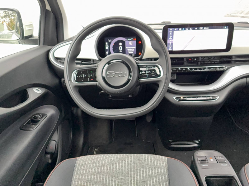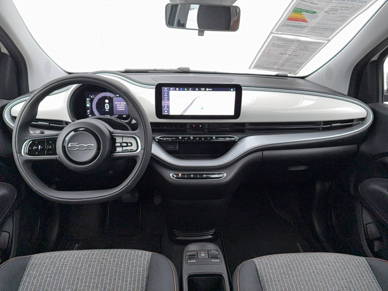 ABS - antiblocage des roues avec répartiteur de freinage EBD / Câble de recharge Mode 3 / Chargeur embarqué 11 kW triphasé / Coques de rétroviseurs couleur carroserie / Détails chromés : logo 500 sur calandre et logo FIAT sur hayon / ESP - Contrôle électronique de stabilité avec aide au démarrage en côté "Hill Holder" / Freinage autonome d'urgence avec détection de piéton et de cycliste / Frein à main électrique / Limiteur de vitesse intelligent avec reconnaissance des panneaux / Mopar Connect Box / Pare-chocs peints couleur carrosserie / Poignées de portes dissimulées / Prise charge rapide (50kW) / Système d'alerte sonore au piéton / Système d'infodivertissement Uconnect 10,25'? avec navigation