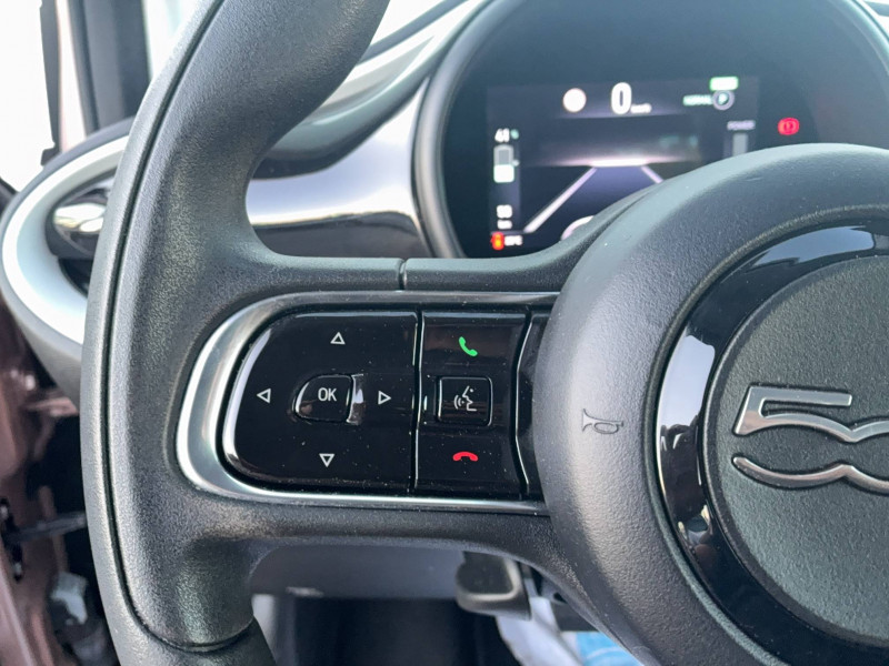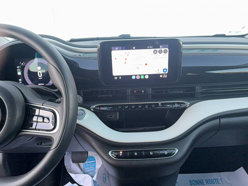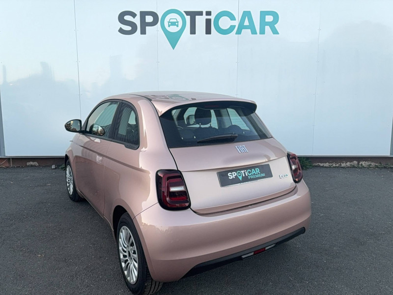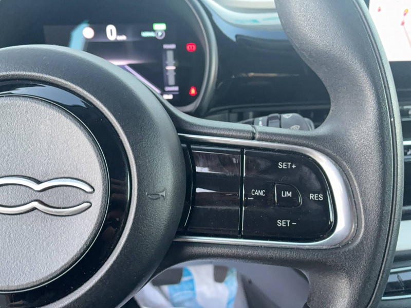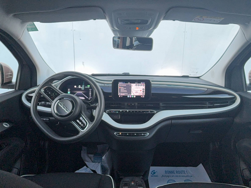 ABS - antiblocage des roues avec répartiteur de freinage EBD / Câble de recharge Mode 3 / Chargeur à induction pour smartphone / Chargeur embarqué 11 kW triphasé / Coques de rétroviseurs couleur carroserie / Détails chromés : logo 500 sur calandre et logo FIAT sur hayon / ESP - Contrôle électronique de stabilité avec aide au démarrage en côté "Hill Holder" / Freinage autonome d'urgence avec détection de piéton et de cycliste / Frein à main électrique / Pack Radio Hiver (Action Plus) / Pare-chocs peints couleur carrosserie / Poignées de portes dissimulées / Prise charge rapide (50kW) / Support smartphone / Système d'alerte sonore au piéton / Volant avec commandes