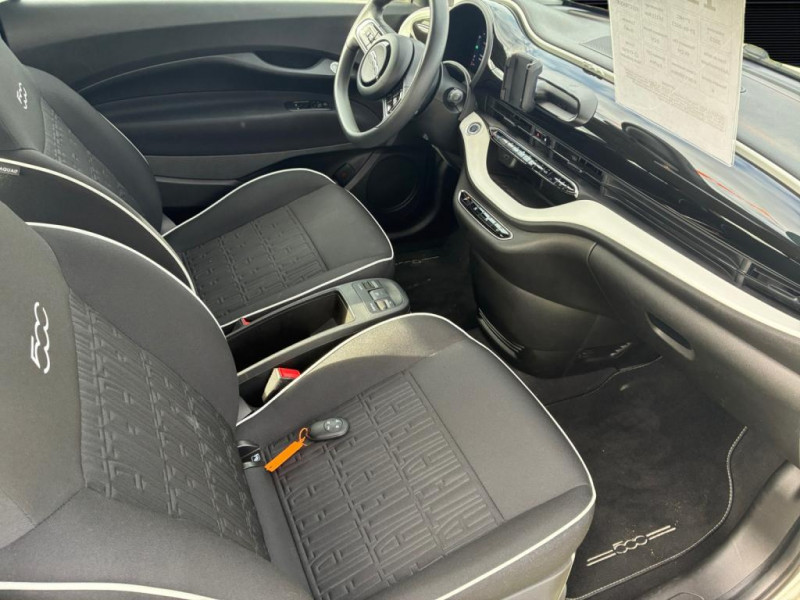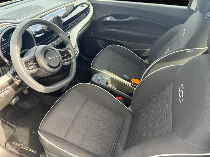 ABS ? antiblocage des roues avec répartiteur de freinage EBD / Détails chromés : logo 500 sur calandre et logo FIAT sur hayon / ESP - contrôle électronique de stabilité avec ?Hill Holder" / Frein à main électrique / Freinage d?urgence autonome / Pare-chocs couleur carrosserie / Poignées de portes dissimulées / Prise CCS Combo 2 DC pour charge rapide jusquà 50 kW / Sélecteur de mode de conduite EV : Normal, Range, Sherpa / Siège conducteur à réglage manuel 4 positions / Support Smartphone / Système dalerte pour piétons / Système davertissement de franchissement de ligne avec correction / Volant avec commandes intégrées