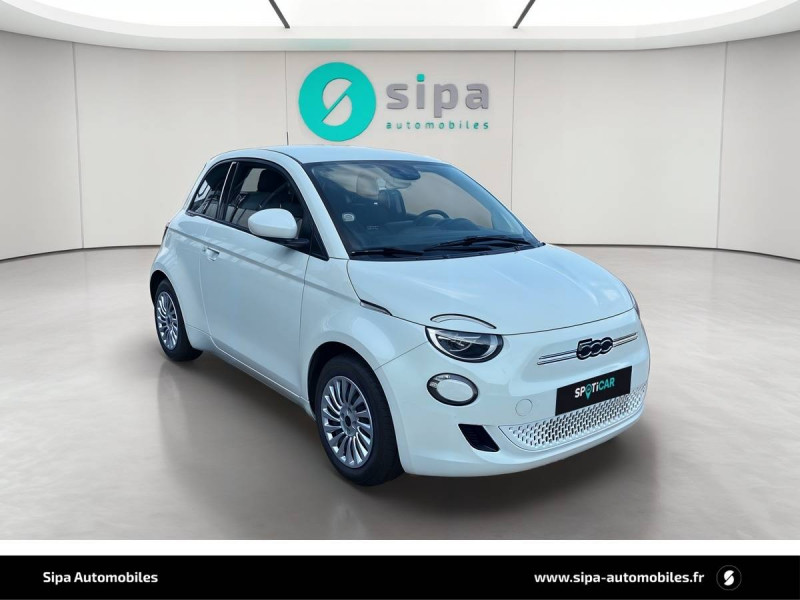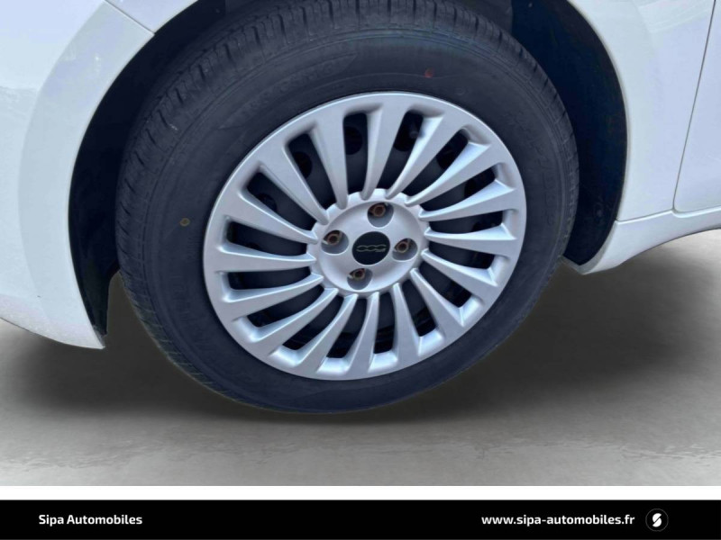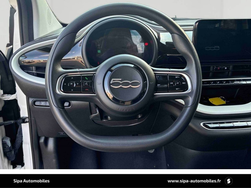 ABS - antiblocage des roues avec répartiteur de freinage EBD / Câble de recharde Mode 3 / Chargeur à induction pour smartphone / Chargeur embarqué 11 kW triphasé / Coques de rétroviseurs couleur carroserie / Détails chromés : logo 500 sur calandre et logo FIAT sur hayon / ESP - Contrôle électronique de stabilité avec aide au démarrage en côté "Hill Holder" / Freinage autonome d'urgence avec détection de piéton et de cycliste / Frein à main électrique / Pack Radio Hiver (Action Plus) / Pare-chocs peints couleur carrosserie / Poignées de portes dissimulées / Prise charge rapide (50kW) / Support smartphone / Système d'alerte sonore au piéton / Volant avec commandes
