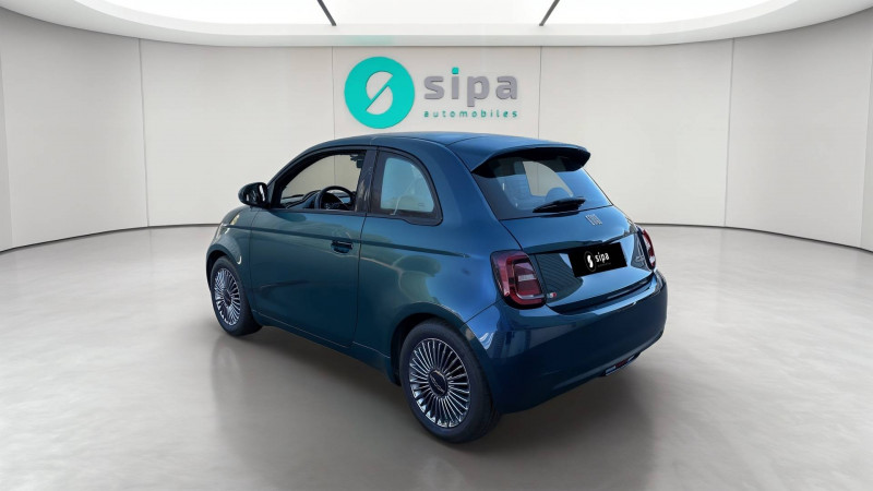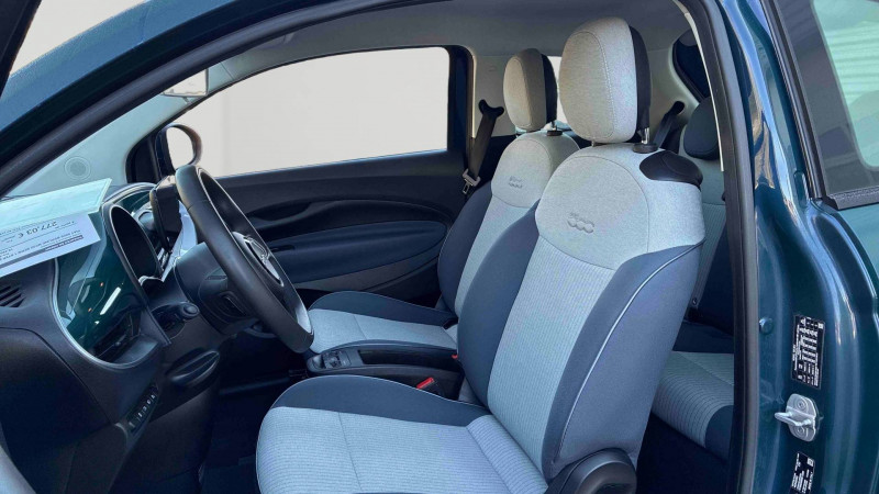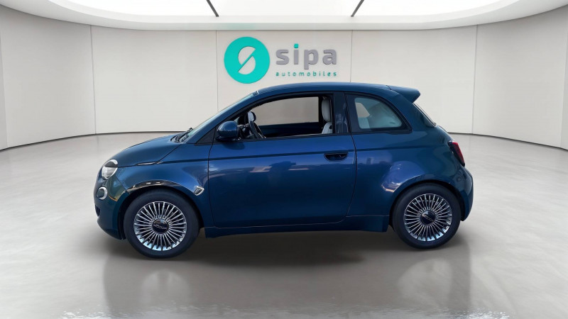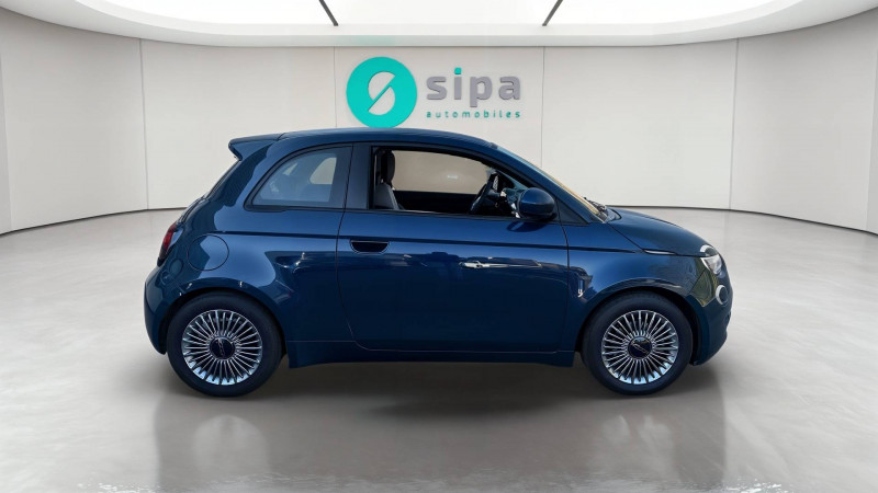 ABS - antiblocage des roues avec répartiteur de freinage EBD / Câble de recharge Mode 3 / Chargeur embarqué 11 kW triphasé / Coques de rétroviseurs couleur carroserie / Détails chromés : logo 500 sur calandre et logo FIAT sur hayon / ESP - Contrôle électronique de stabilité avec aide au démarrage en côté "Hill Holder" / Freinage autonome d'urgence avec détection de piéton et de cycliste / Frein à main électrique / Limiteur de vitesse intelligent avec reconnaissance des panneaux / Mopar Connect Box / Pare-chocs peints couleur carrosserie / Poignées de portes dissimulées / Prise charge rapide (85kW) / Système d'alerte sonore au piéton / Système d'infodivertissement Uconnect 10,25'? avec navigation