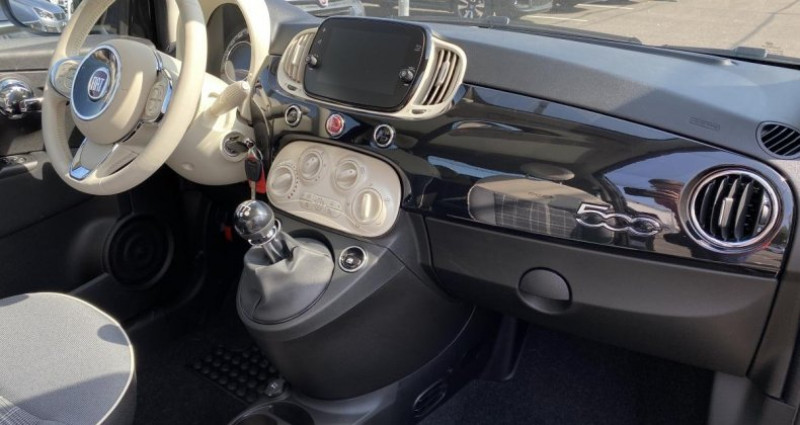 ======= OPTIONS ======= Baguettes latérales couleur carrosserie (avec logo 500) Banquette arrière fractionnable 50 50 Coloris Crossover Black Détecteur de pluie et allumage automatique des projecteurs Projecteurs antibrouillard ======= EQUIPEMENTS DE SERIE ======= Air conditionné Airbags fiat conducteur et passager Airbags Fiat de toit Airbags Fiat latéraux avant Appuie-tête à l'avant, réglables en hauteur Baguette de vitres latérales chromées Capote à ouverture éléctrique et lunette arrière en verre à dégivrage éléctrique Condamnation automatique des ouvrants en roulant Direction assistée Dualdrive avec fonctionCity ESP - contrôle électronique de stabilité avec Hill Holder Jantes alliage 15 New Lounge Limiteur de vitesse Radar de recul Régulateur de vitesse Rétroviseurs extérieurs à réglage électrique et sonde de température extérieure Rétroviseurs extérieurs couleur carrosserie Sellerie Tissu motifs Prince de Galles Siège conducteur réglable en hauteur Système Link : intégration Apple CarPlay et compatibilité Android Auto Système Uconnect 7 HD LIVE (Dual Tuner USB Bluetooth) Vitres avant électriques Volant éco-cuir avec commandes de l'autoradio Volant réglable en hauteur Nb. Vitesses : 6 Conso Mixte : l/100