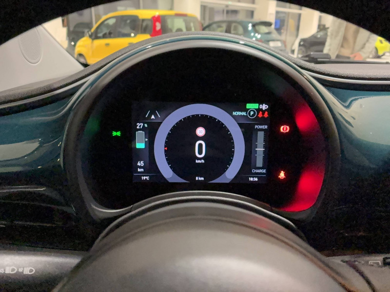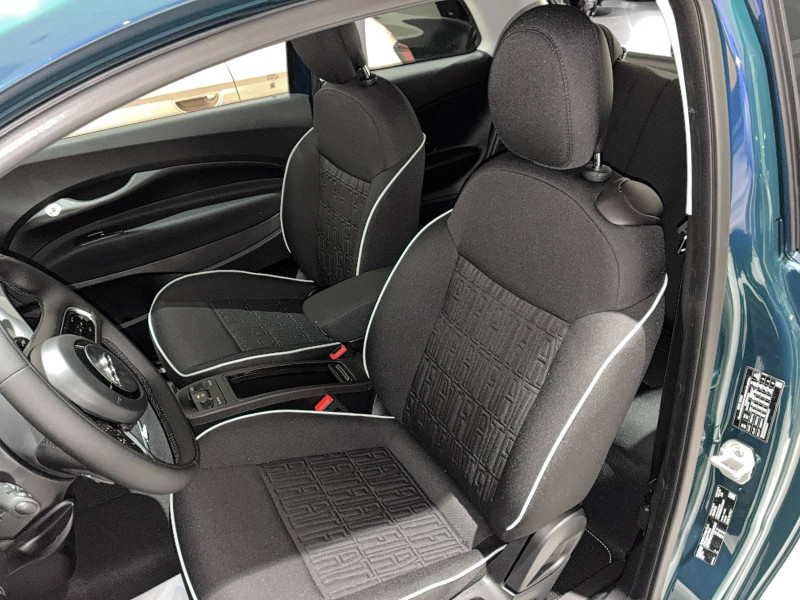 6 HP / ABS - antiblocage des roues avec répartiteur de freinage EBD / Batterie 23,8 kWh / Boîte de vitesse à fonction Continue / Câble de recharge Mode 3 / Chargeur embarqué 11 kW (AC) / Contrôle de la traction (TCS) / Frein à main électrique / Planche de bord couleur carroserie / Port USB type A-Csur tunnel central / Recharge rapide 50 kW (DC) / Sellerie tissu ''Jacquard'' bicolore noir et blanc / Support smartphone / Système U-Connect avec écran central 10.25" Pouces / TPMS / Volant soft touch noir