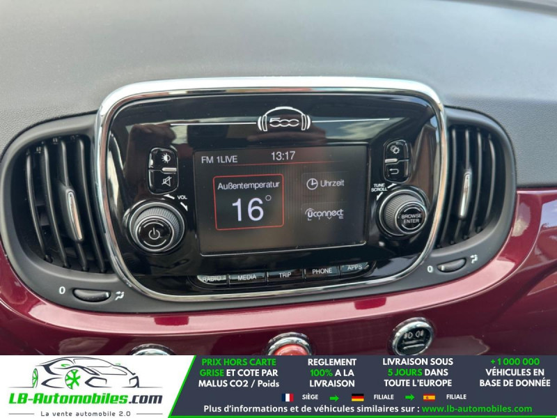 Référence : 1215632 Vos Avantages chez LB-AUTOMOBILES.com / Prix affiché TTC Livré hors carte grise / Livraison sous 10 jours dans toute la France hors 31 / Pas d?avance de frais paiement du véhicule 100% à la livraison par virement. Fiat 500 Neuf remisée, Fiat 500 Occasion Toulouse Beaupuy 31850, Fiat 500 Véhicule sorti de réseau collaborateur, Fiat 500 import, Fiat 500 importateur, Fiat 500 Livraison possible dans toute la France sous 5 jours, Fiat 500, Fiat 500 Location Option Achat, Fiat 500 LLD, Fiat 500 Longue Durée, Fiat 500 TVA récupérable. Possibilité d'extension de garantie 12, 24,36 mois, Pour tout autres voitures import neufs ou occasions collaborateur fortement remisée, Mandataire Audi, Mandataire BMW, Mandataire Volkswagen, Mandataire Mercedes, Mandataire Peugeot Espagne, Mandataire Renault Espagne, Porsche import, Mandataire Citroën Espagne, Mandataire Seat Espagne, n'hésitez pas à nous contacter. « Sous réserve de vente préalable et erreur de saisie » Principaux équipements : - ABS - Antidémarrage - Apple CarPlay - Bluetooth - Capteur de pluie - Carnet d'entretien - Commande vocale - Contrôle de la pression des pneus - Direction assistée - Écran tactile - ESP - Fermeture centralisée - Feux de jour - GPS - Grille de protection pour coffre - Isofix - Jantes alliage - Jantes en acier - Kit mains libres - Lecteur CD - Ordinateur de bord - Phare antibrouillard - Pneus été - Pneus hiver - Port USB - Rétroviseur extérieur électrique - Rétroviseur intérieur anti-éblouissement automatique - Révision complète - Système antipatinage - Système d'alarme - Système Stop & Start - Toit panoramique - Traction avant - Tuner/radio - Véhicule non-fumeur - Verrouillage centralisé sans clé - Vitres électriques - Volant en cuir - Volant multifonction