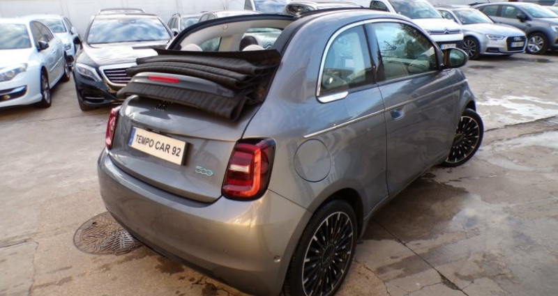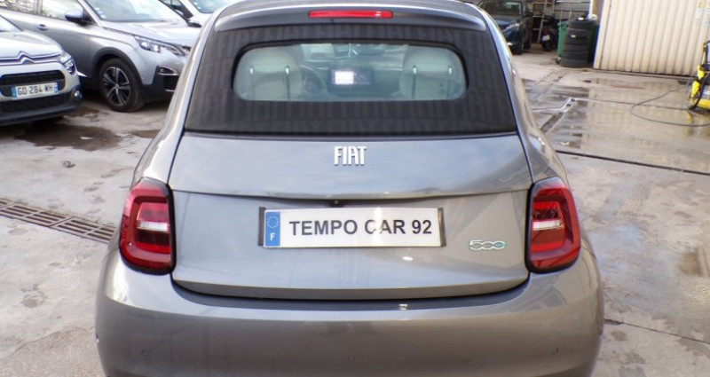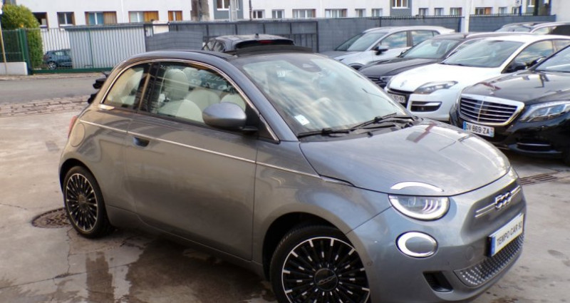Cylindrée : 1 cm3 Nb. Vitesse : 1 - Accoudoir central - Alerte franchissement de ligne LDWS - Appel d'urgence - Apple CarPlay et Android Auto sans fil - Baguettes latérales chromées - Banquette AR fractionnable 50/50 - Câble de recharge Mode 3 - Câble de recharge Mode 3 avec sac de rangement - Câble mode 2 (2, 3 kW) - Capteur de luminosité - Capteur de pluie - Chargeur à induction pour smartphone - Clé spécifique en forme de galet - Climatisation automatique - Contours de vitres chromés - Démarrage sans clé - Détecteur de fatigue - EasyWallbox (1, 8 kW)- hors installation - Feux AV Full LED - Feux croisement/route automatique - Feux de jour à LED - Frein à main électrique - Freinage autonome d'urgence avec détection de piéton et de cycliste - Garantie 2 ans - Garantie batteries 42 kW : 8 ans ou 160 000 km - Jantes alliage 17' bicolores - Limiteur de vitesse intelligent - Ouverture sans clé - Pack 'France Edition Plus' - Pack Avantage - Pack Confort - Pack Copilote Fiat - Pack Magic Eye - Pack Style - Prise charge rapide (85kW) - Projecteurs AV à LED - Projecteurs AV full LED 'Infinity' - Reconnaissance panneaux - Régulateur de vitesse - Rétroviseur intérieur photochromatique - Sélecteur de mode de conduite - Sellerie Eco-cuir monogramme FIAT Planche de bord exclusive eco-cuir Capote monogramme Fiat exclusive avec Capote de couleur Noire - Services connectés via application smartphone - Seuils de portes - Siège conducteur avec 6 réglages - Sièges AV avec 6 réglages - Système audio à 4 HP - Système Uconnect 10, 25'' avec navigation - Tapis de sol - Tapis de sol AV/AR avec logo 500 - Vitres AR surteintées - Vitres full électriques ouverture/fermeture par télécommande - Volant eco-cuir suivi complet en concession
