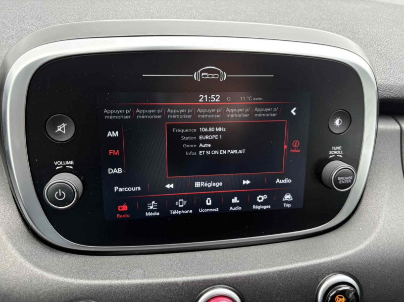 Bleu Venezia métallisé / Banquette 60/40 / Frein stationnement électrique / Tissu noir + monogramme FIAT