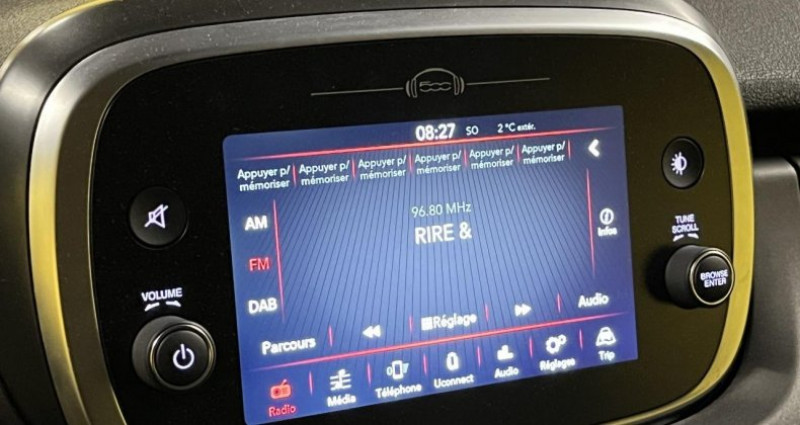 ======= OPTIONS ======= Pack Confort Peinture pastel Rouge Passione Roue de secours de type galette ABS ? antiblocage des roues avec répartiteur de freinage EBD Airbags conducteur et passager Airbags latéraux et rideaux Climatisation Commandes au volant Contrôle électronique de stabilité (ESC) Coques de rétroviseurs noires Feux de jour halogènes Frein de stationnement électrique Hill Holder - aide au démarrage en côte Instrumentation de bord TFT 3,5? en couleur Intégration d'un Smartphone via Apple Car Play et Android Auto Jantes 17¨ Limiteur de vitesse intelligent Look Urban Planche de bord couleur gris titane Poignées de portes extérieures Gris Satiné Projecteurs antibrouillard halogènes Régulateur de vitesse Rétroviseurs extérieurs électriques et dégivrants Reconnaissance des panneaux de signalisation Sellerie Tissu Noir avec monogramme FIAT Système d'avertissement de franchissement de ligne avec correction Système multimédia 7 Vitres électriques avant et arrière Volant Soft-Touch ======= EQUIPEMENTS DE SERIE ======= ABS antiblocage des roues avec répartiteur de freinage EBD Airbags conducteur et passager Airbags latéraux et rideaux Climatisation Commandes au volant Contrôle électronique de stabilité (ESC) Coques de rétroviseurs noires Feux de jour halogènes Frein de stationnement électrique Hill Holder - aide au démarrage en côte Instrumentation de bord TFT 3,5 en couleur Intégration d'un Smartphone via Apple Car Play et Android Auto Jantes 17¨ Limiteur de vitesse intelligent Look Urban Planche de bord couleur gris titane Poignées de portes extérieures Gris Satiné Projecteurs antibrouillard halogènes Régulateur de vitesse Rétroviseurs extérieurs électriques et dégivrants Reconnaissance des panneaux de signalisation Sellerie Tissu Noir avec monogramme FIAT Système d'avertissement de franchissement de ligne avec correction Système multimédia 7 Vitres électriques avant et arrière Volant Soft-Touch Nb. Vitesses : 7 Véhicule Importé : Non Conso Mixte : 5.00l/100