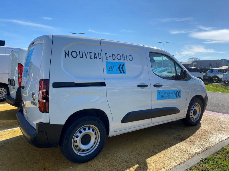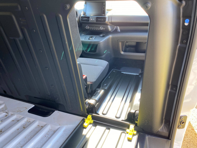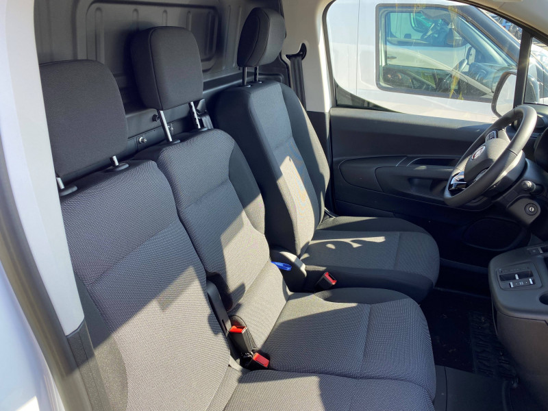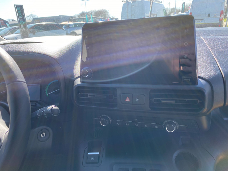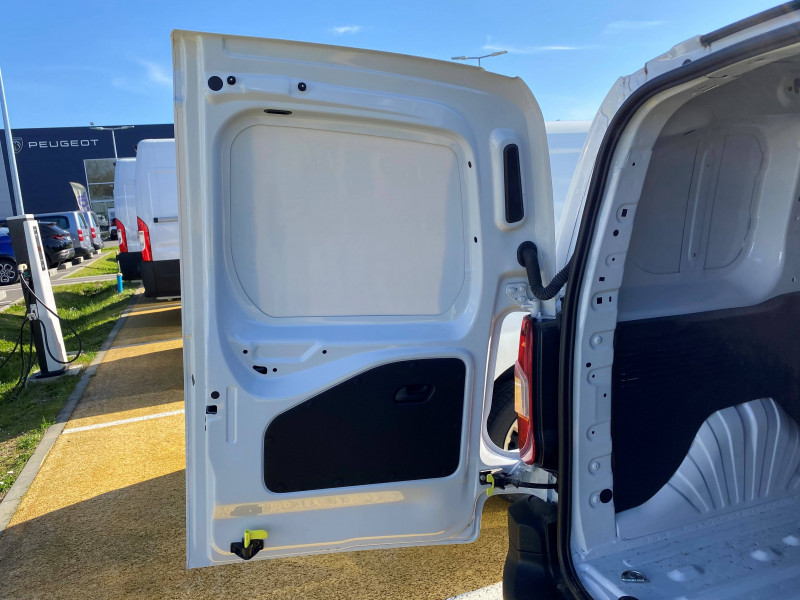 6 anneaux d'arrimage au sol dans la zone de chargement / ABS, AFU, ASR et ESP / Boîte à gant ouverte en partie basse côté passager / Boîte à gants fermée et réfrigérée en partie haute côté passager / Câble Mode 3 pour prise Type-2 Wallbox // 7,4 KW (32A monophasé longueur 6 m) / Capucine / Chargeur embarqué 7kW AC monophasé // 100kW DC / Cloison pleine fixe / Détecteur de sous-gonflage / Essuie-vitre avant Magic Wash et Allumage automatique des feux de croisement / Frein de stationnement électrique / Garnissage "MISTRAL GREY" / Jantes tôle 16'' grises avec cabochon et pneumatiques 215/65 R16 102H / Kit de dépannage provisoire de pneumatiques / Lève-vitres Conducteur et Passager électriques / Portes AR battantes 60/40 tôlées avec ouverture à 180° / Prise 12V sur planche de bord / Rangement fermé derrière le combiné, côté conducteur / Revêtement de sol en moquette dans l'habitacle / Siège conducteur avec réglage en longueur et dossier inclinable / Siège passager fixe avec grand rangement sous assise basculante / Système audio MP3 (2HP + 2 tweeters) numérique DAB avec Kit mains libres Bluetooth et prise USB et écran tactile monochrome 5''