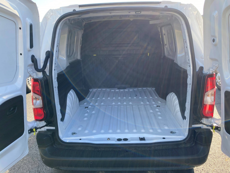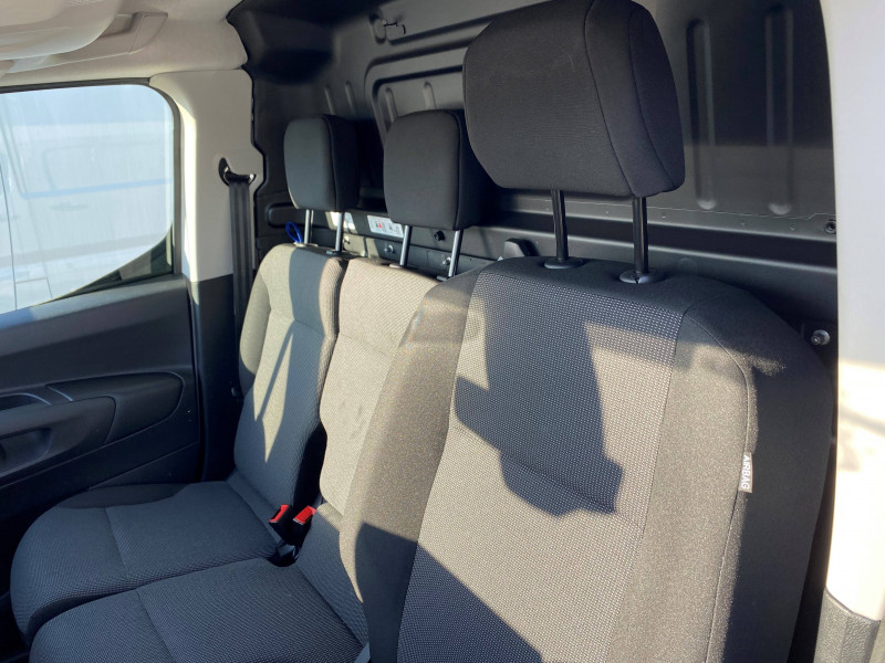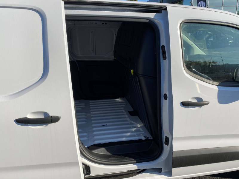 6 anneaux d'arrimage au sol dans la zone de chargement / Airbags conducteur et passager: frontaux, latéraux, rideaux / Boîte à gant ouverte en partie basse côté passager / Boîte à gants fermée et réfrigérée en partie haute côté passager / Boîte de vitesses manuelle 6 rapports / Capucine / Cloison pleine fixe / Commutation automatique des feux de route / Condamnation centralisé avec 1 plip HF + 1 clé mécanique / Connect Box avec Pack SOS et assistance / Contrôle de la traction (TCS) / Détection de sous-gonflage / Essuie-vitre AV Magic Wash / Frein de stationnement électrique / Jantes tôle 15'' grises avec pneumatiques 195/65 R15 90U / Kit de dépannage provisoire de pneumatiques / Lève-vitre conducteur et passager électriques / Pack Safety Alerte risque collision et Freinage d'urgence, Lecture des panneaux de vitesse, Détection et Alerte somnolence, Alerte franchissement de ligne avec correction / Portes AR battantes 60/40 tôlées avec ouverture à 180° / Prise 12V sur planche de bord / Revêtement de sol en moquette dans l'habitacle / Service connecté ''Preventive Maintenance'' (inclus pendant 4 ans): Tableau de bord de la flotte, Alertes sur l'état du véhicule, Suivi de la maintenance (& calendrier), Envoi de rapports périodiques / Siège conducteur avec réglage en longueur et dossier inclinable / Siège passager individuel réglable en inclinaison, appuis tête réglable en hauteur / Station d'accueil Smartphone, application radio avec streaming audio 2HP, Kit mains libres Bluetooth, 2 prises USB Type C (charge uniquement) / Tissus Curitiba Triton Meltem
