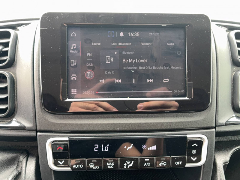 ABS, AFU, ASR et ESP / Alternateur standard 180 A / Avertisseur sonore de marche AR pour piétons / Batterie standard 95 Ah / Boitier Télématique Autonome 4G (BTA) + services connectés / Caméra de recul avec lignes de guidage actives / Cloison pleine tôlée / Crochets d'arrimage latéraux dans l'espace de chargement / Kit de gonflage de pneumatiques Fix&Go / Kit de réduction de CO2: Spoiler central (DAM), Guide d'air, Grille avec volets pilotés (AGS) / Pack Sécurité (ADAS) Freinage d'urgence autonome avec détection piéton/cycliste, Aide au maintien dans la voie, Reconnaissance des panneaux de signalisation, Détecteur de fatigue ou d'inattention (attention assist), Adaptation intelligente de la vitesse / Pare-chocs AV grainé / Porte AR à 2 battants tôlées / Porte-gobelets au milieu du tableau de bord / Projecteurs halogènes avec feux de circulation diurne / Rappel de bouclage des ceintures de sécurité / Réservoir carburant 90 litres / Sellerie en tissu crêpe noir + appuie-tête plein en tissu / Siège conducteur avec accoudoir / Système audio 5 avec radio numérique DAB + Bluetooth