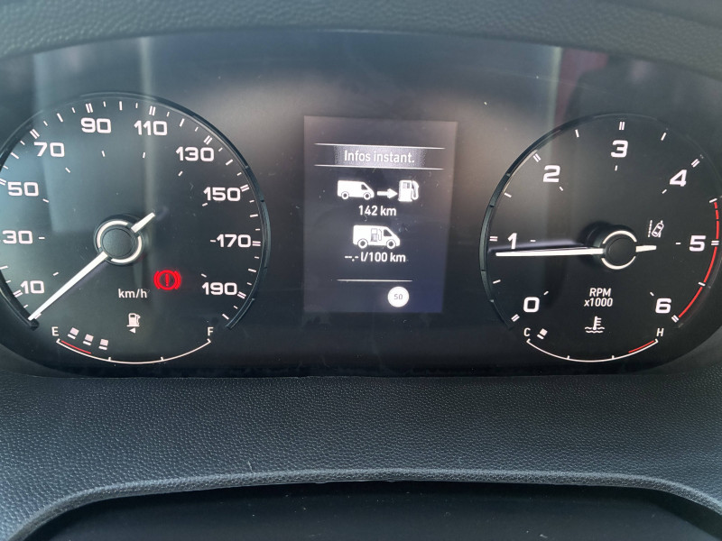 ABS, AFU, ASR et ESP (ESC amélioré avec assistance en cas de vent latéral, contrôle de stabilité de la remorque, et freinage après collision) / Airbag passager pour banquette biplace (120 litres) / Airbag passager pour siège passager individuel (90 litres) / Airbag passager (simple ou double) / Alternateur standard 180 A / Avertisseur sonore de marche AR pour piétons / Batterie standard 95 Ah / Boîtier télématique automome (BTA) / Capteur de pression des pneus (TPMS indirect) / Cloison tôlée / Crochets d'arrimage latéraux dans l'espace de chargement / Kit de gonflage de pneumatiques Fix&Go / Kit de réduction de CO2: Spoiler central (DAM), Guide d'air, Grille avec volets pilotés (AGS) / Lève-vitres AV électriques (séquentiel côté conducteur à la descente et à la montée avec fonction anti-pincement, séquentiel à la descente côté passager) / Pack Sécurité (ADAS) Freinage d'urgence autonome avec détection piéton/cycliste, Aide au maintien dans la voie, Reconnaissance des panneaux de signalisation, Détecteur de fatigue ou d'inattention (attention assist), Adaptation intelligente de la vitesse / Pare-chocs AV grainé / Porte AR à 2 battants tôlées / Porte-gobelets au milieu du tableau de bord / Projecteurs halogènes avec feux de circulation diurne / Rappel de bouclage des ceintures de sécurité / Réservoir carburant 90 litres / Réservoir d'ADBlue 19 litres / Roues en acier 15'' / Sellerie en tissu crêpe noir + appuie-tête plein en tissu / Service connecté ''Preventive Maintenance'' (inclus pendant 4 ans): Tableau de bord de la flotte, Alertes sur l'état du véhicule, Suivi de la maintenance (& calendrier), Envoi de rapports périodiques / Siège conducteur avec réglage en hauteur, réglagle lombaire et accoudoir / Système audio 5 avec radio numérique DAB + Bluetooth + 1 port USB