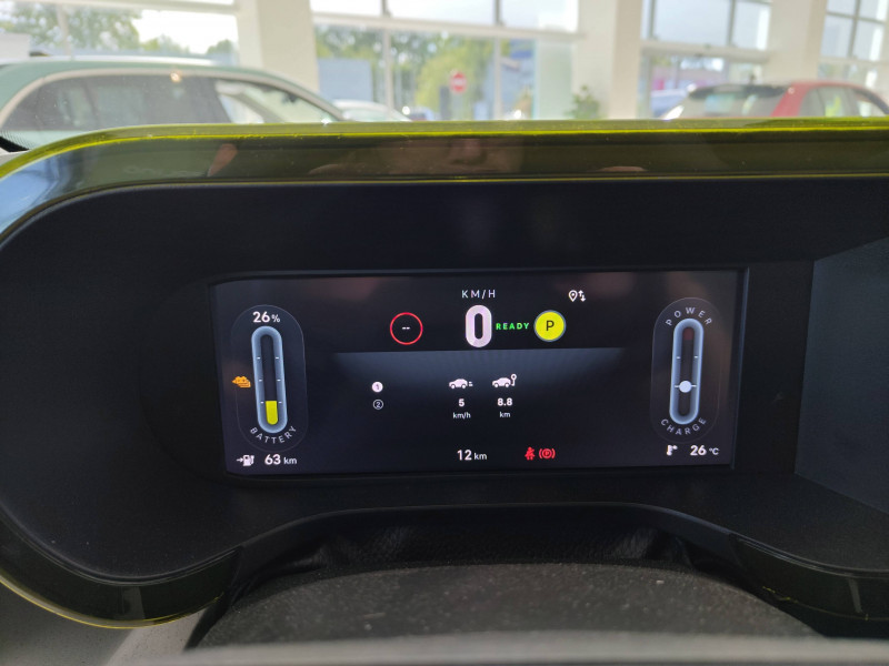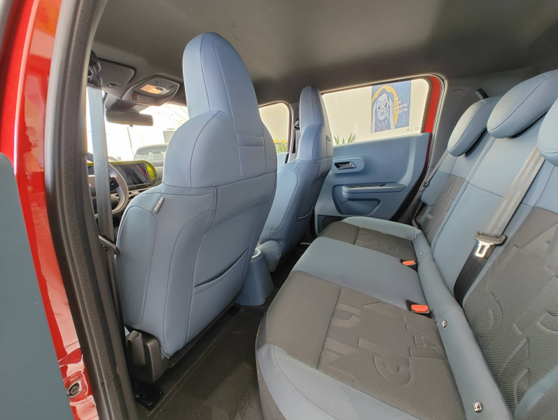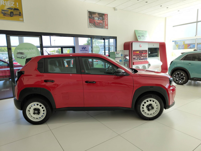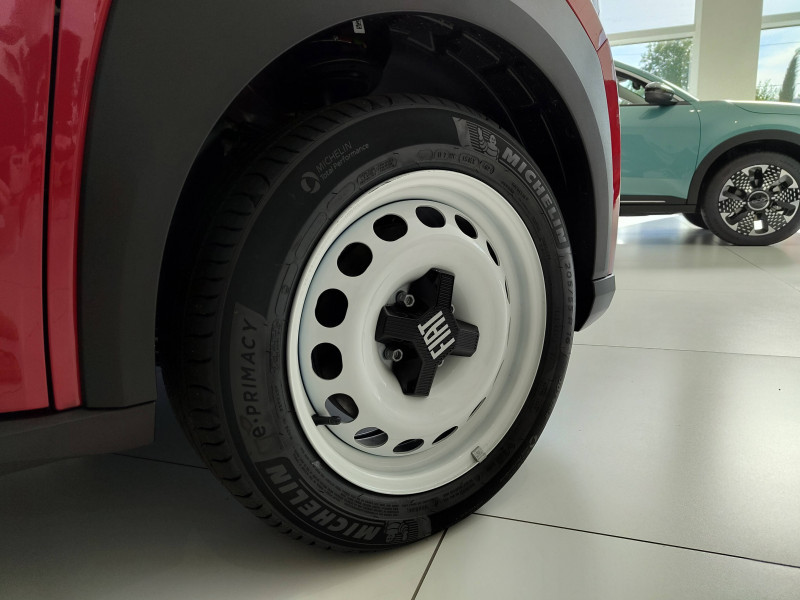 Alerte d'attention du conducteur / Arches de roues avec renfort plastique / Boîte de vitesse automatique 1 rapport / Câble de recharge rétractable dans la calandre avant (OBC 7kW) / Casquette AR aérodynamique / Chargeur embarqué 7kW (trappe latérale) / Clé avec télécommande / Combiné d'instrumentation numérique 10" / Connectivité Smartphone Apple CarPlayTM et Android AutoTM sans fil / Contrôle de la traction (TCS) / Coques de rétroviseurs extérieurs noires / Freinage autonome d'urgence avec détection de piéton et de cycliste / Frein de stationnement électrique / Jantes acier 16" blanches avec centre de roue noir / Logo "RED" sur le montant central / Planche de bord avec revêtement style / Poignées de portes extérieures noires / Recharge rapide 100kW / Rétroviseur intérieur manuel jour/nuit / Sellerie en tissu Style + / Système ISOFIX siège AV passager et places latérales banquette AR / Système Uconnect 10,25" tactile