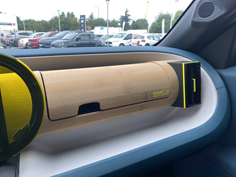 Alerte d'attention du conducteur / Arches de roues avec renfort plastique / Barres de toit longitudinales argentées / Boîte à gants supérieure avec revêtement ''Bambox'' (véritable fibre de bambou) / Boîte de vitesse automatique 1 rapport / Casquette AR aérodynamique / Chargeur embarqué 7kW (trappe latérale)