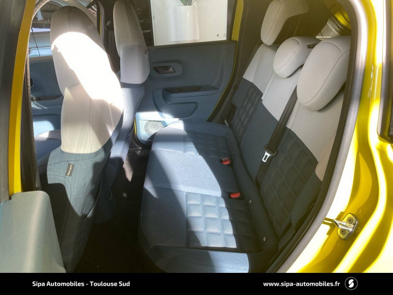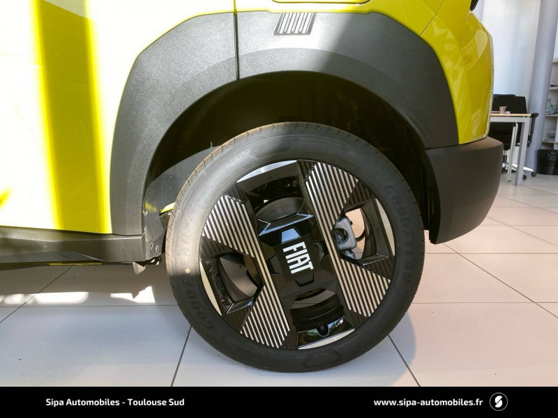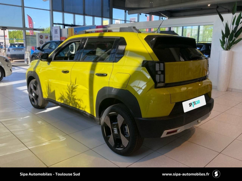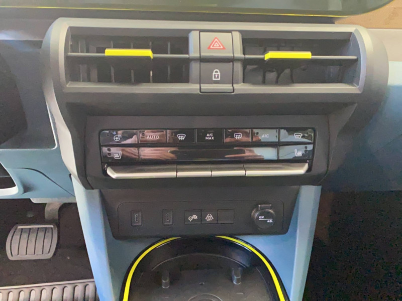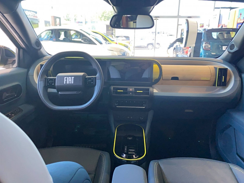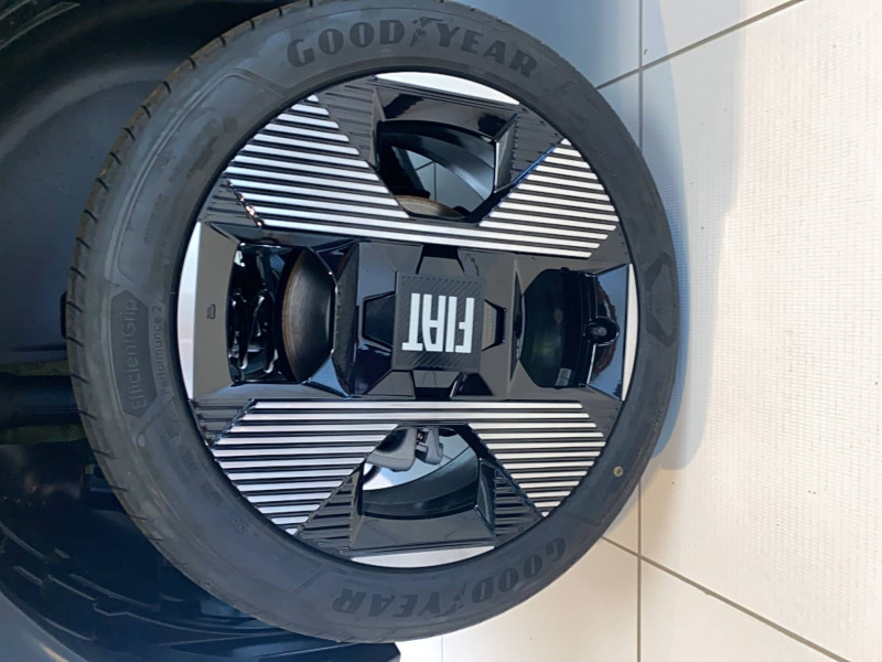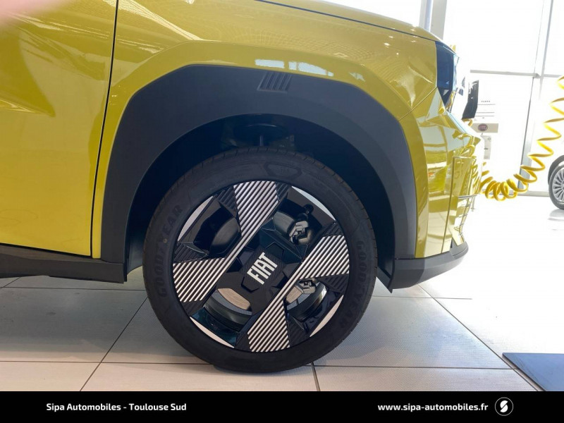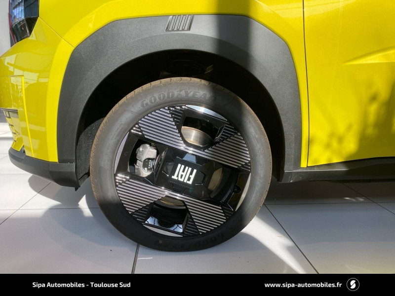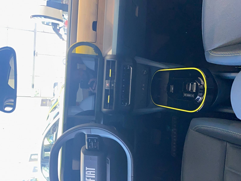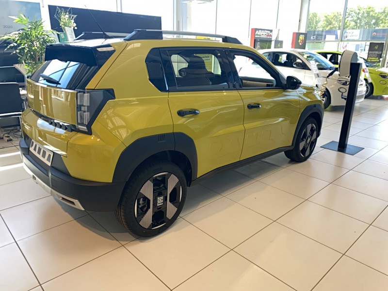 Alerte d'attention du conducteur / Arches de roues avec renfort plastique / Barres de toit longitudinales argentées / Boîte à gants supérieure avec revêtement ''Bambox'' (véritable fibre de bambou) / Boîte de vitesse automatique 1 rapport / Câble de recharge rétractable dans la calandre avant (OBC 7kW) / Casquette AR aérodynamique / Chargeur embarqué 7kW (trappe latérale) / Clé avec télécommande / Combiné d'instrumentation numérique 10" / Connectivité Smartphone Apple CarPlayTM et Android AutoTM sans fil / Contrôle de la traction (TCS) / Coques de rétroviseurs extérieurs noires / Essuie-glaces AV automatiques avec détecteur de pluie / Freinage autonome d'urgence avec détection de piéton et de cycliste / Frein de stationnement électrique / Garnissage des portes en tissu / Liseuses à LED / Planche de bord avec revêtement style / Poignées de portes extérieures noires / Recharge rapide 100kW / Rétroviseur intérieur manuel jour/nuit / Rétroviseur intérieur photochromatique / Sabots argentés AV et AR / Sellerie en tissu La Prima / Système ISOFIX siège AV passager et places latérales banquette AR / Système Uconnect 10,25" Nav / Volant Soft Touch