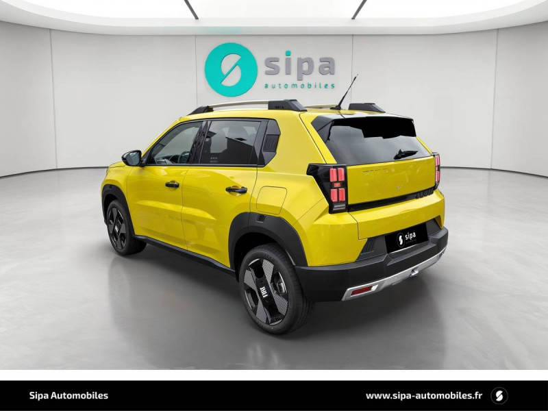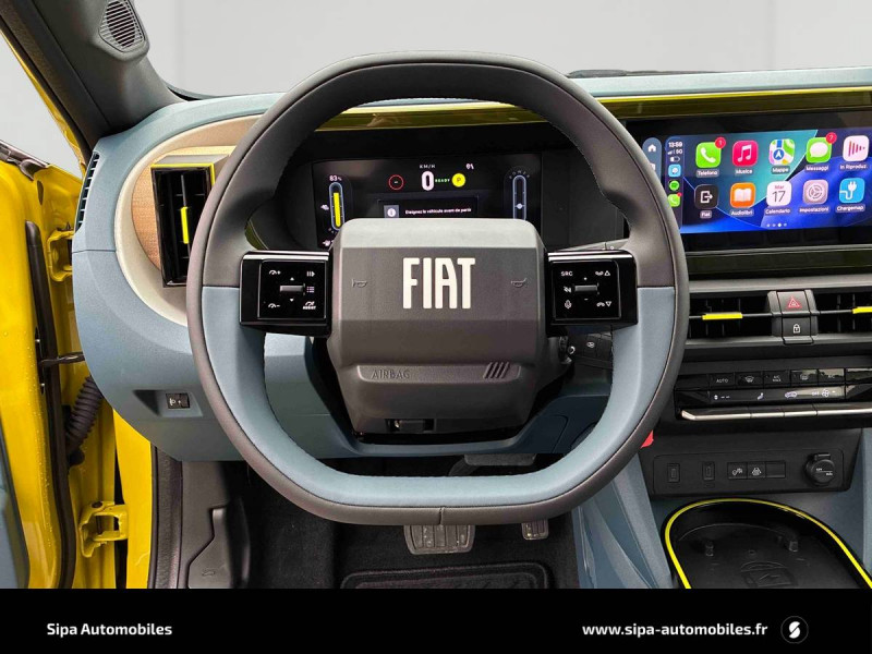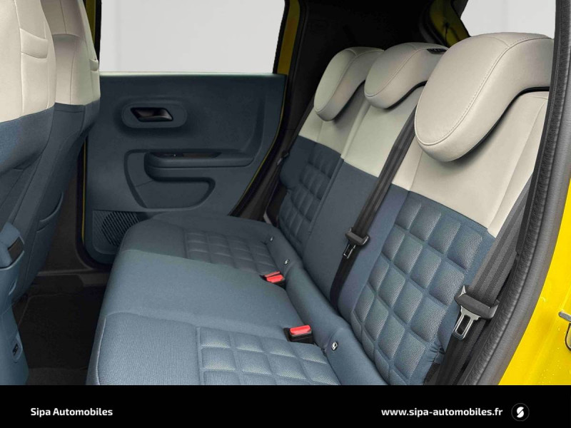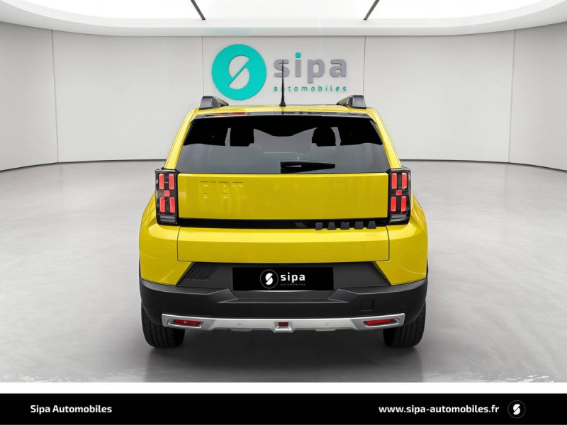 Alerte d'attention du conducteur / Arches de roues avec renfort plastique / Barres de toit longitudinales argentées / Boîte à gants supérieure avec revêtement ''Bambox'' (véritable fibre de bambou) / Boîte de vitesse automatique 1 rapport / Câble de recharge rétractable dans la calandre avant (OBC 7kW) / Casquette AR aérodynamique / Chargeur embarqué 7kW (trappe latérale) / Clé avec télécommande / Combiné d'instrumentation numérique 10" / Connectivité Smartphone Apple CarPlayTM et Android AutoTM sans fil / Contrôle de la traction (TCS) / Coques de rétroviseurs extérieurs noires grainées / Essuie-glaces AV automatiques avec détecteur de pluie / Freinage autonome d'urgence avec détection de piéton et de cycliste / Frein de stationnement électrique / Garnissage des portes en tissu / Liseuses à LED / Planche de bord avec revêtement style / Poignées de portes extérieures noires grainées / Recharge rapide 100kW / Rétroviseur intérieur manuel jour/nuit / Rétroviseur intérieur photochromatique / Sabots argentés AV et AR / Sellerie en tissu La Prima / Système ISOFIX siège AV passager et places latérales banquette AR / Système Uconnect 10,25" Nav / Volant Soft Touch
