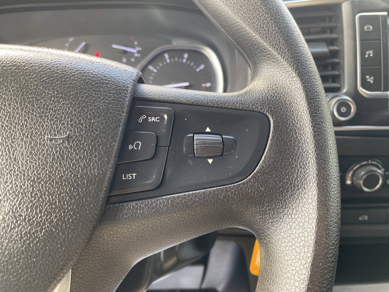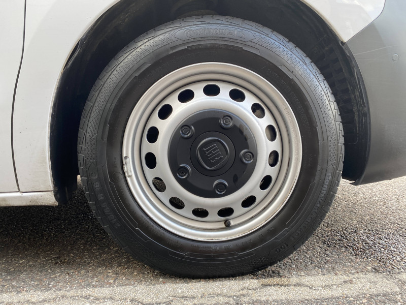 2 Prises 12V sur planche de bord, dans la boîte à gants / 6 anneaux d'arrimage répartis uniformément sur la zone de chargement / Banquette passager AV 2 places avec appui-têtes réglables en hauteur avec rangement sous assise / Climatisation manuelle régulée en température / Cloison pleine tôlée / Détection de sous-gonflage indirecte / Garnissage Tissu bi-ton noir/gris / Jeu de clefs: 2 plips HF 3 boutons avec fonction sélectivité / Kit de regonflage pneumatiques (Compresseur 12 V + Cartouche de produit de colmatage) / Pare-brise feuilleté acoustique / Portes AR battantes 50/50 tôlées à ouverture à 180º avec verrou sur porte gauche uniquement / Revêtement de sol en TPO dans l'habitacle / Roues tôles peintes grises 16" avec cabochon noir / Siège conducteur individuel avec appui-tête réglable en hauteur et avec accoudoir / Système audio numérique (DAB) MP3 (2HP + 2 tweeters) + Bluetooth