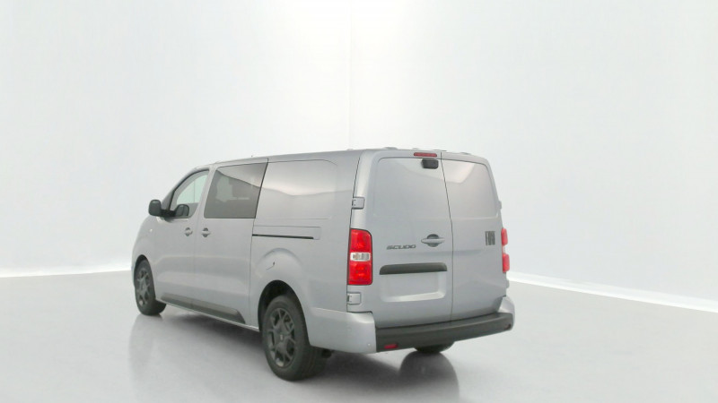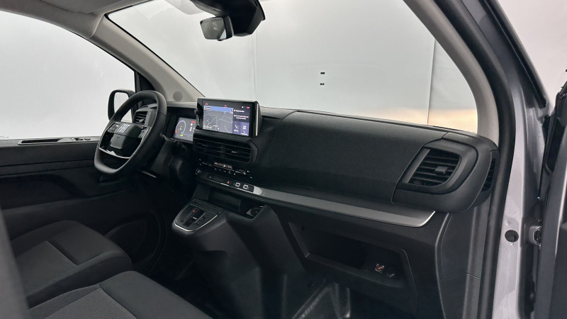 Pack Sécurité / Pack Look Extérieur / VEHICULE EN ARRIVAGE : DELAIS / PHOTOS / ÉQUIPEMENTS / CO2, NON CONTRACTUELS / Banquette passager AV 2 places avec appui-têtes réglables en hauteur avec rangement sous assise / Cloison pleine PVC avec vitre plexiglass / Allumage automatique des feux de croisement et des essuie-vitres AV / Charge utile majorée / Vitres latérales fixes surteintées acoustiques en rang 2 / Portes AR battantes 50/50 tôlées à ouverture à 180° / Banquette fixe 3 places en rang 2 avec coffre de rangement amovible sous assises gauche et centrale et avec zone pour charge longue sous assise droite / Connectivité via BTA (appel d'urgence et d'assistance localisées + offres services connectés) / Jantes tôle noires 17'' avec enjoliveur / Revêtement de sol TPO en rangs 1 et 2 / Siège conducteur individuel avec accoudoir / 6 anneaux d'arrimage répartis uniformément sur la zone de chargement / Accès et démarrage mains libres / Aide au stationnement avant, arrière et latéral + Système de surveillance d'angle mort / Caméra de recul 180° avec affichage sur écran tactile 10'' HD couleur / Combiné numérique 10'' HD couleur / Ecran tactile 10'' HD couleur avec Navigation 3D connectée et Apple CarPlay® et Android auto? sans fil / Frein de stationnement électrique / Planche de bord avec décor Liquid Palladium et boîte à gants inférieure et rangement central supérieur fermés / Prise 12V (120W max) dans la zone de chargement / Recharge sans fil pour smartphone / Système de rétrovision arrière et latérale droite par 2 caméras avec affichage sur rétroviseur intérieur numérique / / Véhicules équivalents: Trafic, Jumpy