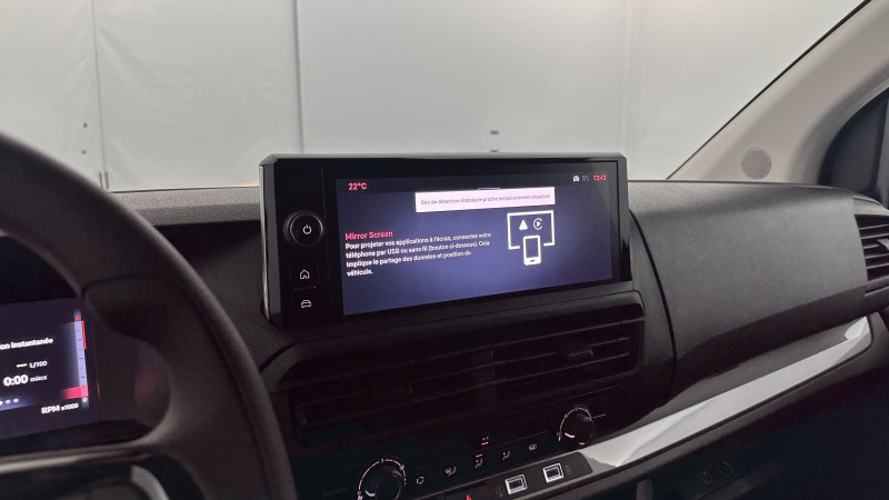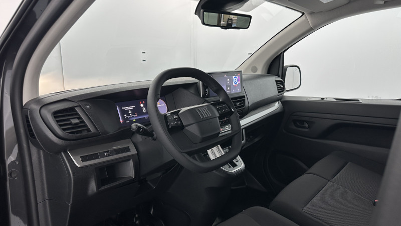 Aide au stationnement avant, arrière et latéral + Système de surveillance d'angle mort / Caméra de recul 180° avec affichage sur écran tactile 10'' HD couleur / Combiné numérique 10'' HD couleur / Éclairage renforcéà LED dans la zone de chargement / Ecran tactile 10''HD couleur avec Apple CarPlay® et Android auto? sans fil / Plancher bois anti-dérapant 9 mm avec baguette aluminium / Planche de bord avec décor Liquid Palladium / Prise 12V (120W max) dans la zone de chargement / Roue de secours homogène (jante tôle noire) / Système de rétrovision arrière et latérale droite avec affichage sur rétroviseur intérieur numérique / Allumage automatique des feux de croisement et des essuie-vitres / Banquette passager 2 places avec rangement sous assise / Boitier télématique (appel d'urgence et d'assistance géolocalisés) / Cloison pleine tôlée / Détection de sous-gonflage / Pack Sécurité / Portes arrière battantes 50/50 tôlées à ouverture à 180° / Revêtement de sol TPO dans la cabine / Freinage automatique d'urgence avec alerte risque de collision / / Véhicules équivalents: Trafic, Jumpy