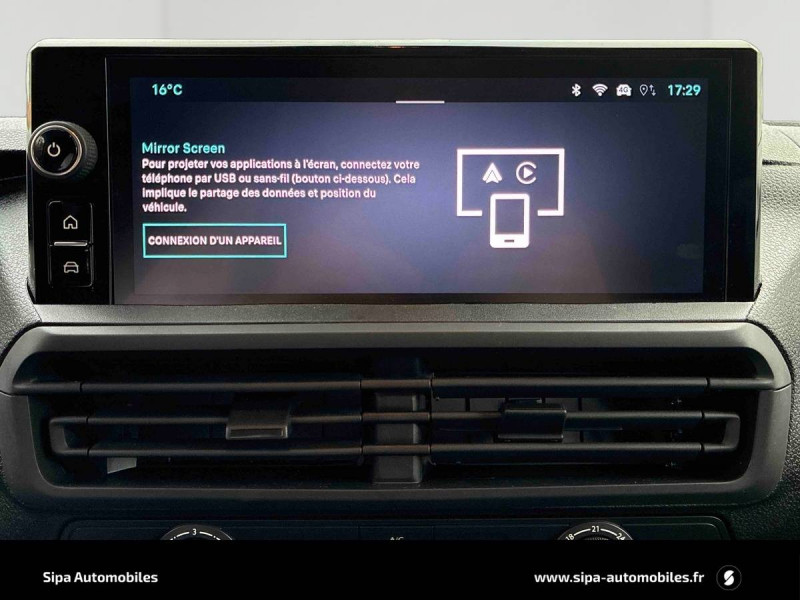 8 anneaux d'arrimage répartis uniformément sur la zone de chargement / Allumage automatique des feux de croisement et des essuie-vitres AV / Banquette passager AV 2 places avec appui-têtes réglables en hauteur avec rangement sous assise / Boucliers AV/AR noirs teintés masse / Charge utile majorée / Climatisation manuelle régulée en température / Cloison pleine tôlée / Combiné numérique LCD noir et blanc / Connectivité via BTA (appel d'urgence et d'assistance localisées + offres services connectés) / Détection de sous-gonflage indirecte / Garnissage tissu / Jeu de clefs: 2 plips HF 3 boutons avec fonction sélectivité / Kit de regonflage pneumatiques (Compresseur 12 V + Cartouche de produit de colmatage) / Pack Sécurité - Freinage automatique d'urgence avec alerte risque de collision - Assistance au maintien dans la voie - Commutation automatique des feux de route - Détection inattention conducteur - Reconnaissance des panneaux de vitesse et recommandation / Panneaux de garniture de type Isorel en rang 2 et 3 / Pare-brise feuilleté acoustique / Peinture Opaque Blanc Icy / Portes AR battantes 50/50 tôlées à ouverture à 180° avec verrou sur porte gauche uniquement / Prises 12V (1200W) max dans la boîte à gants / Projecteurs H15 avec feux diurnes à lampes / Radio RCE (DAB), écran 5'' monochrome tactile (2HP + 2 tweeters) + Bluetooth + 1 prise USB / Revêtement de sol en TPO dans l'habitacle / Roues tôles peintes grises 16" avec cabochon noir / Siège conducteur avec appui-tête réglable en hauteur et accoudoir Réglage : longueur, inclinaison, réhausse et lombaire