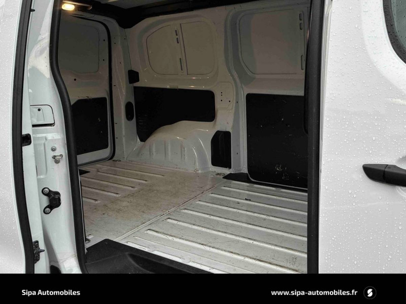 2 Prises 12V sur planche de bord, dans la boîte à gants / 6 anneaux d'arrimage répartis uniformément sur la zone de chargement / Banquette passager AV 2 places avec appui-têtes réglables en hauteur avec rangement sous assise / Climatisation manuelle régulée en température / Cloison pleine tôlée / Détection de sous-gonflage indirecte / Garnissage Tissu bi-ton noir/gris / Jeu de clefs: 2 plips HF 3 boutons avec fonction sélectivité / Kit de regonflage pneumatiques (Compresseur 12 V + Cartouche de produit de colmatage) / Pare-brise feuilleté acoustique / Portes AR battantes 50/50 tôlées à ouverture à 180º avec verrou sur porte gauche uniquement / Revêtement de sol en TPO dans l'habitacle / Roues tôles peintes grises 16" avec cabochon noir / Siège conducteur individuel avec appui-tête réglable en hauteur et avec accoudoir / Système audio numérique (DAB) MP3 (2HP + 2 tweeters) + Bluetooth