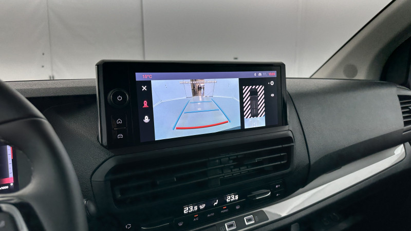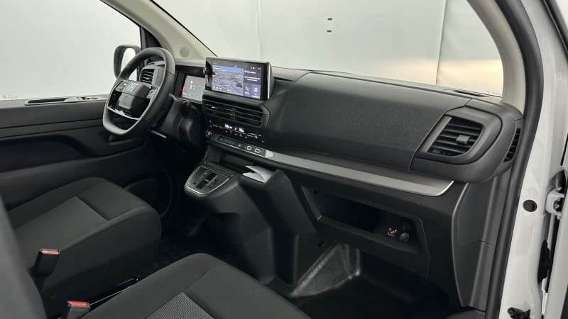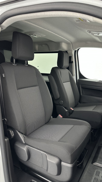 Anneaux d'arrimage (6 en Taille XL sur la zone de chargement) / Charge utile majorée (sur Taille XL) / Cloison pleine PVC avec vitre plexiglass / Portes arrière battantes 50/50 tôlées à ouverture à 180° / Revêtement de sol TPO en rangs 1 et 2 / Jantes tôle noires 17'' avec enjoliveur / Pack Look Extérieur / Planche de bord avec décor Liquid Palladium et boîte à gants inférieure et rangement central supérieur fermés / Vitres latérales fixes surteintées en rang 2 / Prise 12V (120W max) dans la zone de chargement / Accès et démarrage mains libres / Combiné numérique 10'' HD couleur / Rétroviseur intérieur prismatique / Ecran tactile 10'' HD avec Navigation 3D connectée, Apple CarPlay® et Android auto? sans fil + 2 prises USB-C / Recharge sans fil pour smartphone / Siège conducteur avec accoudoir et réglage lombaire / Allumage automatique des feux de croisement et des essuie-vitres avant / Banquette fixe 3 places en rang 2 avec zone sous assise droite pour charge longue (accessible par la zone de chargement) / Frein de stationnement électrique / Boitier télématique (appel d'urgence et d'assistance géolocalisés) / Pack Sécurité / Aide au stationnement avant, arrière et latéral + Système de surveillance d'angle mort / Caméra de recul 180° avec affichage sur écran tactile 10'' HD couleur / Système de rétrovision arrière et latérale droite par 2 caméras avec affichage sur rétroviseur intérieur numérique / / Véhicules équivalents: Trafic, Jumpy