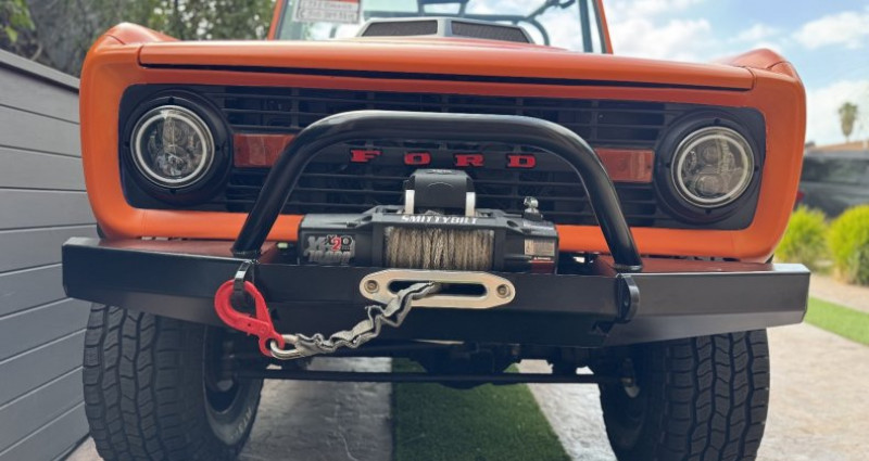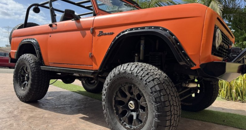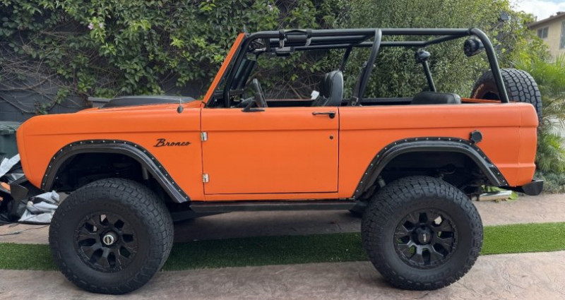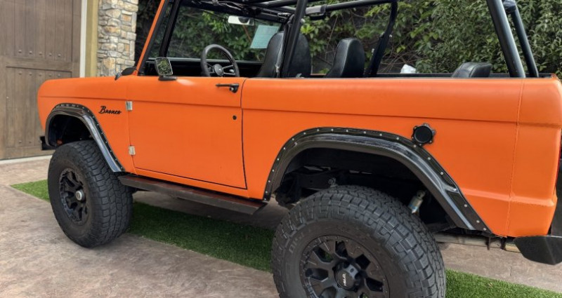 Le véhicule en question est un 1973 Ford Bronco, qui a été récemment réaménagé professionnellement. Son corps d'origine est de qualité exceptionnelle et est recouvert d'un habillage orange. Le moteur, un 408 Windsor Stroker de plus de 525 chevaux, est équipé d'une injection électronique Holley Sniper et d'un système d'aspiration ram air. Le moteur est associé à une boite de vitesses à cinq rapports NV3550 manuelle et à un transfert ATLAS II à un rapport de 5:1.Ce véhicule est également équipé d'un réservoir de carburant de 21 gallons, d'une triple-cœur radiateur avec deux ventilateurs électriques et un ventilateur mécanique flexible. Les suspensions sont dotées de chocs Bilstein 5100, d'amortisseurs de James Duff avec un relevage de 3.5 pouces et d'un coffrage de suspension renforcé. Le véhicule dispose également d'un coffrage de cinq points en acier. Il est muni de freins à disque sur les quatre roues, de hubs WARN lourds et d'un verrouillage limité Track-Lock. Les roues sont équipées de pneus Cooper AT3 de 35 pouces.Le véhicule est également équipé d'un treuil Smittybilt X20 de 10 000 livres, de tableaux de bord Dakota Digital, d'un volant personnalisé et d'une unité audio Kenwood. Le véhicule a été habillé en tissu orange et dispose de deux ensembles de portes, l'un standard et l'un en fibre de verre.. Ce descriptif est basé sur les éléments communiqués par le propriétaire avec un traitement assisté. Merci pour votre indulgence en cas de formulation perfectible. Provenance : California. Disponibilité : 7 semaines, clés en main. 73 000 € tout compris (importation, taxes, procédure d'immatriculation). Annonce publiée le 13/10/2025