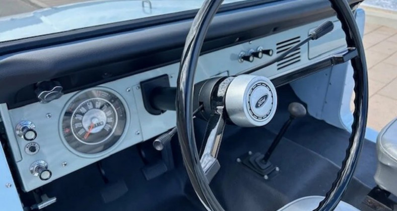 Le 1966 Ford Bronco U13 Roadster est un modèle rarissime qui a bénéficié d'une restauration exceptionnelle de bout en bout. Ce véhicule, offert pour la première fois en 1966, a été conçu par Ford pour répondre à la demande croissante des jeunes acheteurs en matière de véhicules utilitaires tout-terrain. Le Bronco était un deux-portes, basé sur une plate-forme courte (92 pouces) et possédait une suspension et un châssis uniques. La puissance venait des mêmes moteurs Ford et la boîte de vitesses était empruntée aux camions de la gamme F-series. Le Bronco était disponible en trois styles de carrosserie différents : station wagon, pickup ou roadster, et il était équipé de nombreux accessoires pour l'utilisation off-road tels qu'un saut-de-moi, une grue et un bar de remorquage. Le design était simple et fonctionnel, avec des pare-chocs et des vitres simples, tout en étant attractif grâce aux côtés contournés de la carrosserie. Le Bronco U13 Roadster est le plus rare des trois styles de carrosserie proposés, avec seulement 5 000 exemplaires produits sur trois ans avant que l'option ne soit abandonnée en raison de ventes lentes. C'était le plus sportif des trois styles de carrosserie, avec des sièges arrière, une banquette arrière à deux personnes, sans portes, toit ni jantes, et un intérieur très minimaliste. Le roue de remplacement était fixé à l'intérieur de la portière arrière et les sièges étaient recouverts de tissu argenté. Le véhicule a été restauré avec soin pour retrouver son état d'origine et il est fini en bleu Arcadian clair avec des bandes de couleur blanche aux portes. Les détails de la restauration sont soignés et le véhicule ne paraît pas sur-restauré. Le moteur est un six cylindres en ligne de 170 pouces cubes, qui a été détaillé pour retrouver son aspect original. Ce moteur est connu pour sa robustesse et en combinaison avec la légèreté du Bronco, il livre une performance acceptable grâce à une puissance de 105 chevaux.. Provenance : CA, USA. Disponibilité : 7 semaines, clés en main. 85 500 € tout compris (import, taxes, procédure d'immatriculation). Annonce publiée le 19/10/2025