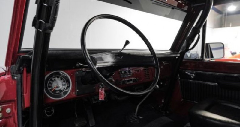 Ce 1975 Ford Bronco, modèle de première génération, a été magnifiquement remis en état avec un investissement considérable ! Le véhicule est fini en rouge extérieur avec un intérieur noir, tout en offrant une hauteur augmentée et des optiques LED. Le moteur V8 Ford de 302 ci a été upgradé avec une ignition Petronix et un carburateur Edelbrock. Le véhicule est équipé d'une boîte automatique C4, d'un transfert de puissance 4x4, de freins et de direction assistés, ainsi que d'un climatiseur. Les roues sont équipées de pneus BF Goodrich All-Terrains avec des lettres blanches, offrant une apparence typique de conduite en terrain difficile. L'intérieur a également été remis en état avec des sièges redessinés en noir et des tapis de sol renouvelés avec isolant acoustique. Le véhicule dispose également d'un rollbar de sécurité et d'un sélecteur 4x4 stock dans le plancher. Le véhicule est remis en état dans son intégralité et prêt pour les traversées de terrain ainsi que pour les manifestations.. Ce descriptif est basé sur les éléments communiqués par le propriétaire avec un traitement assisté. Merci pour votre indulgence en cas de formulation perfectible. Provenance : Texas. Disponibilité : 7 semaines, clés en main. 100 000 € tout compris (importation, taxes, procédure d'immatriculation). Annonce publiée le 13/11/2025