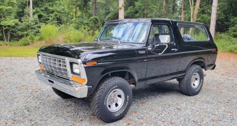 Informations fournies par le vendeur : 1979 Ford Bronco Custom XLT, 1979 Ford Bronco XLT 400M, 4 speed, 400M-4v engine, rebuilt 400M engine w 4 barrel Holley carb, Warner 4-speed manual transmission, new brakes all around, 33x12.5x15LT BF Goodrich all terrain tires, both differentials serviced, electronic A/C and heat controls, original 351-2v engine replaced in 2018, Marti report available, all custom made interior on original frames, original factory center console, original leather wrapped steering wheel, original factory high back bucket seats and flip down rear seat, updated retrosound stereo with in dash antennae, Raven Black paint, body and fiberglass top base/ clear painted, colored sanded and buffed to a deep mirror reflective finish, FORD emblems removed from hood and tailgate, factory original Bronco Custom emblems restored, new chrome bumpers, all new clear glass, chrome fold away mirrors.. Provenance : North Carolina. Disponibilité : environ 7 semaines, clés en main. 66 500 € tout compris (importation, taxes, procédure d'immatriculation). Nous représentons les acheteurs sur le marché nord-américain et sécurisons chaque étape du processus, de la sélection à la mise en circulation. Annonce publiée le 19/11/2025