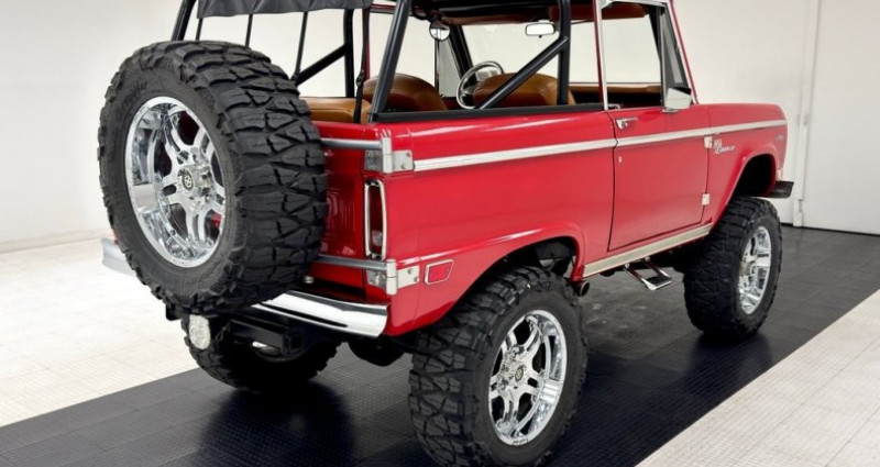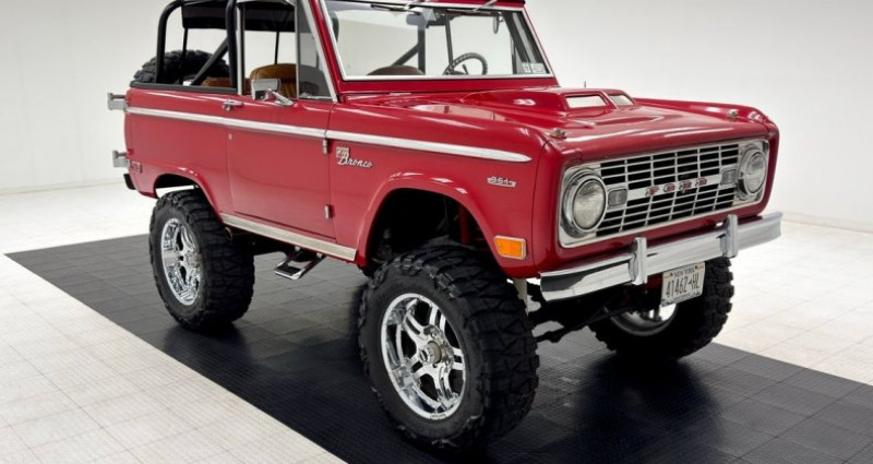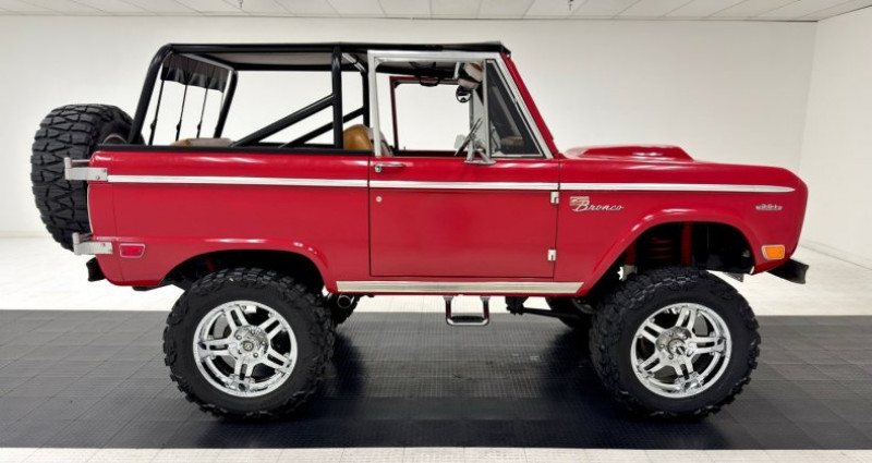 1968 Ford Bronco, Rangoon Red exterior, Saddle interior, 351 Windsor V8, 3-Speed Automatic, RWD, lifted, Edelbrock Heads, Off Road Capable, 56, 976 miles, 20-inch chrome wheels, American Racing, 35x12.50R20LT all terrain tires, stainless side spear, rocker trim, function hood scoop/power bulge, chrome bumpers, black canvas bikini top, step up under doors, Ford grille, fiberglass hood, clean undercarriage, power disc brakes, dual exhaust, Turbo mufflers, radius arm and coil spring suspension, leaf springs in back, clean interior, diamond steel plate door cards, saddle leather bucket seats, Trenz steeler wheel, retro radio, A/C, soft leather dash pad, visors, tan carpet pieces, saddle trim, rubber boot on shifter, no glaring imperfections, heater blower and reverse lights not working, test drive functions not guaranteed, resto-modification, resto-modded classic Ford Broncos top five hottest specialty vehicles in the collector market, U15NLC99697 U15-U100 N-289ci 2bbl V8 L-Michigan Truck Assy Plant C99697-Sequential Unit Number, Classic Auto Mall consignment dealer, climate controlled 336, 000-square foot showroom, largest single location consignment dealer of classic and collectible vehicles in the country, Morgantown, Pennsylvania, 610-901-3804 contact information.. Provenance : Pennsylvania. Disponibilité : environ 7 semaines, clés en main. 90 500 € tout compris (importation, taxes, procédure d'immatriculation). Annonce publiée le 25/11/2025