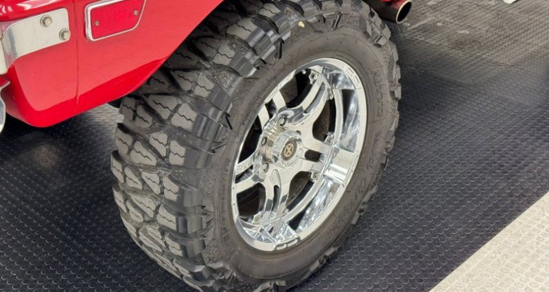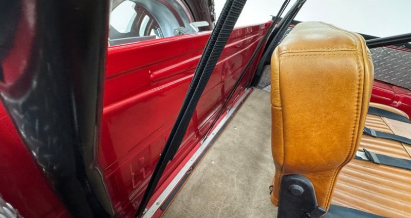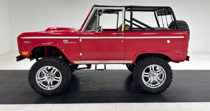 1968 Ford Bronco, 2-door, 4-wheel disc brakes, saddle leather seats, 20-inch chrome wheels, 2-stage Rangoon Red exterior, lift kit, 20-inch American Racing wheels with 35x12.50R20LT all terrain tires, stainless side spear, rocker trim, function hood scoop/power bulge, chrome bumpers, black canvas bikini top, red fiberglass hood pins, diamond steel plate door card, pleated saddle leather bucket seats, Trenz steering wheel, retro radio (not hooked up), A/C, tan carpet with saddle trim, 351ci Windsor V8, fuel injected, Edelbrock Performer Aluminum heads, 3-speed automatic transmission, Ford 9 rear, Dana 44 front, headers, 12-volt system, red coil springs, power disc brakes, dual exhaust with Turbo mufflers, radius arm and coil spring suspension, drive-ability concerns with heater blower, reverse lights, and radio, U15NLC99697, L-Michigan Truck Assy Plant, Sequential Unit Number. Provenance : , USA. Disponibilité : environ 7 semaines, clés en main. 90 500 € tout compris (import, taxes, procédure d'immatriculation). Annonce publiée le 26/11/2025