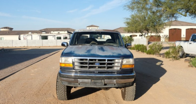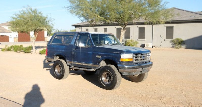 1993 Ford Bronco Eddie Bauer • 5.8L V8 • 116, 000 miles • Driven 1-2 days a week • Mostly Original • Six inch lift • New Rear End • Clean Title • New Tires • Refurbished Air Conditioning • Working Rear Window • No rust (other than surface) • 35 Inch Tires • Aftermarket Exhaust • Passed Emissions • Needs - Paint - Seats Reupholstered - Carpet Replacement in some parts - New plastic pins for topper - New Eddie Bauer Emblem on Passenger side - Rear Driver side container not mounted. Provenance : Arizona. Disponibilité : environ 7 semaines, clés en main. 22 500 € tout compris (importation, taxes, procédure d'immatriculation). Annonce publiée le 29/11/2025