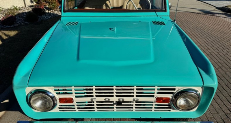 - Modèle : Bronco U13 - Construit comme un U15 à l'usine - Exporté en Colombie - Nombre incertain de modèles exportés en 1966 (aucune documentation) - Estimé qu'environ 200 ont été produits en 1966 - Moteur 170ci export à compression réduite - Vitesseomètre en kilomètres - Nombre total approximatif de Bronco U13 produits : ~5 000 - Nombre de Bronco U13 connus aujourd'hui : moins de 400 - 3e chiffre de la référence de fabrication pour identifier l'export - Châssis et cadre poudrés - Transmission manuelle à 3 vitesses / boîte de vitesses de transfert - Boîte de vitesses 9 pouces Ford originale - Differential Dana 30 original - Roues d'origine à 15 pouces - Couvre-roues exclusives de 1966 - Freins à tambours originaux (cylindre de maitre de freins à pistons double ajoutés) - Nouveau circuit électrique - Climatisation et chauffage - Échappement en acier inoxydable - Stereo Bluetooth Retrosound - Volant de remplacement (sans peinture) - Référence de vente : 3e chiffre de la référence de fabrication 6 (plutôt que F) - Sondage de vente : Maison achetée en Floride, vendeur souhaite vendre quelques jouets pour acheter un bateau. Provenance : Virginia. Disponibilité : environ 7 semaines, clés en main. 63 000 € tout compris (importation, taxes, procédure d'immatriculation). Annonce publiée le 03/12/2025