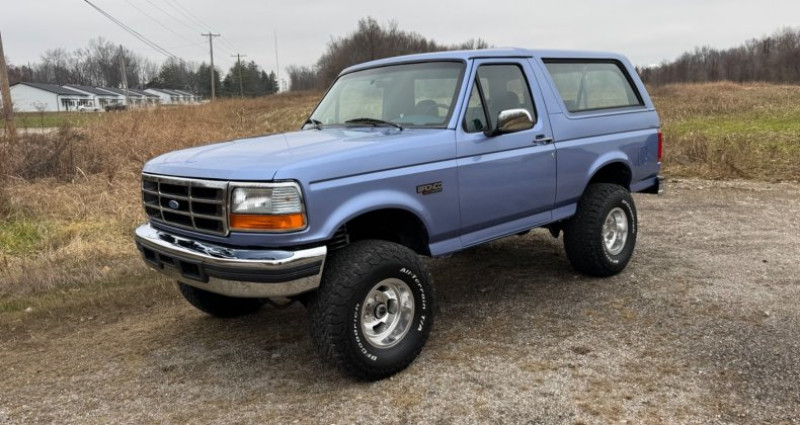 - Marque : Ford - Modèle : Bronco - Année : 1996 - Kilométrage : 142 000 miles - Couleur : Portofino blue - État : Très bon état, courtier dit que la voiture court très bien et n'a pas de problème - Travaux récents : Peinture OEM Ford nouvelle, soulevage de 4 pouces, pneus BF Goodrich K02 de 33x12.50, jantes nouvelles, grille, phares et feux arrière nouveaux, radio nouvelle - Travaux sur le titre : Titre propre - Travaux sur la finance : Peut être financé avec un dépôt de 10% - Localisation : Newburgh, Indiana. Provenance : Indiana. Disponibilité : environ 7 semaines, clés en main. 44 500 € tout compris (importation, taxes, procédure d'immatriculation). Annonce publiée le 13/12/2025