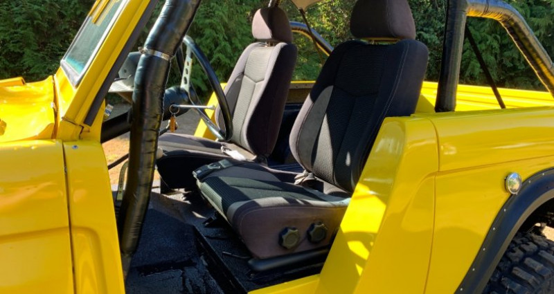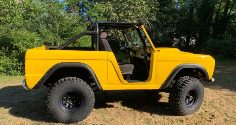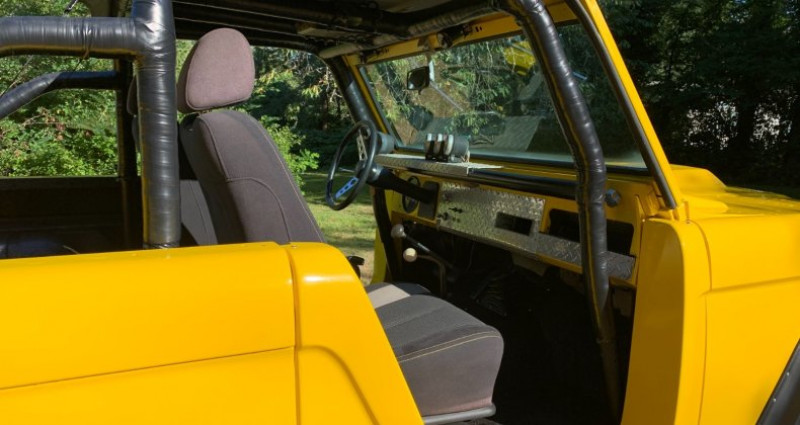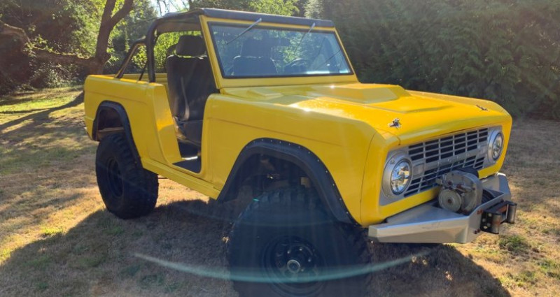 - Année : 1968 - Marque : Ford - Modèle : Bronco - Couleur extérieure : Jaune - Intérieur : Cuir noir personnalisé - Moteur : 351 Windsor - Radiateur : 4 core James Duff - Transmission : NP 435 4 vitesses avec Dana 20 transfer case - Rear end : Dana 44 4:11 avant avec freins à disques, Warn hubs, Trutrac verrouillage avec axes plus gros - Arrière : Ford big bearing 9 inch 4:11 avec Strange spool, freins à disques, et axes Yukon après-marché - Échappement : 2 1/2 pouces avec silencieux 3 chambres Flowmaster - Soupapes : James Duff 3 1/2 pouces avec pneus et jantes 35 pouces - Mise à jour récente : Réfection complète de la carrosserie et peinture dans les deux dernières années, avec barres de protection de roches soudées pour protéger le corps, barres de toit bikini neuf, freins avant et arrière neufs, wiper motor et wiper motor set up neufs, Wild Horses front driveline neuf, carburateur neuf, inserts de porte en fibre de verre personnalisés, roues et pneus 35 pouces noirs neufs.. Provenance : Washington. Disponibilité : environ 7 semaines, clés en main. 53 500 € tout compris (importation, taxes, procédure d'immatriculation). Annonce publiée le 13/12/2025