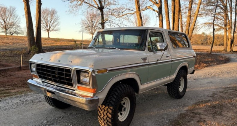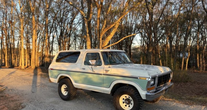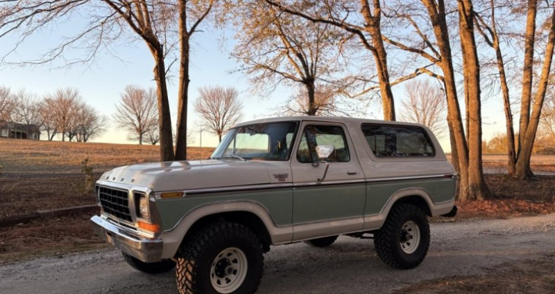 - Année : 1979 - Modèle : Bronco XLT Ranger - Trim : Top de la gamme pour 1979 - Sièges : Banquette pour un total de 6 ceintures de sécurité - Couleur : Un des 2 de 1979 avec cette peinture et cet équipement - État : Très peu de ruste - Patina : Patine originale - Moteur : Moteur en bon état, fonctionne et conduit bien - Roues : Roues de wagon avec des capots noirs OEM, nouvelles - Carburateur : Carburateur Edlebrock 4 barreaux installé - Batterie : Nouvelle batterie AGM et câbles et démarrage - Échappement : Nouveaux silencieux - Verrouillage des portes : Nouveaux verrouillages des portes - Tintage : Tintage léger sur les fenêtres arrière et latérales - Pneus : Pneus Nitto Trail Grappler M/T 33x12.50, comme neuf, datés de 2021 - Problèmes connus : Lumière de plafond non fonctionnelle, climatisation non fonctionnelle (non testée ou réparée), essuie-glace fonctionne uniquement sur HI, radio non fonctionnelle, régulateur de vitesse non relié mais les composants sont présents.. Provenance : South Carolina. Disponibilité : environ 7 semaines, clés en main. 58 000 € tout compris (importation, taxes, procédure d'immatriculation). Annonce publiée le 15/12/2025