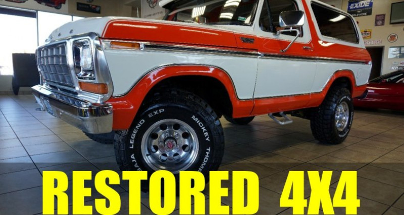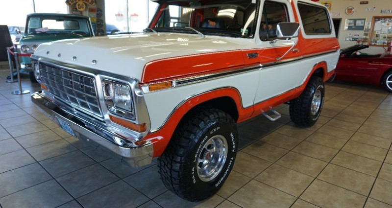 - Année : 1979 - Marque : Ford - Modèle : Bronco - Version : Custom 4X4 - Carrosserie : 4 portes - Couleur extérieure : Bicolore blanc et orange - Couleur intérieure : Noir - Moteur : 351 V8 - Boîte de vitesses : 4 vitesses manuelle - Transmission : 4 roues motrices - Kilométrage : 88 457 miles (environ 142 323 km) - État : Restauration - VIN : U15HLDJ1821. Provenance : Iowa. Disponibilité : environ 7 semaines, clés en main. 53 500 € tout compris (importation, taxes, procédure d'immatriculation). Annonce publiée le 25/12/2025