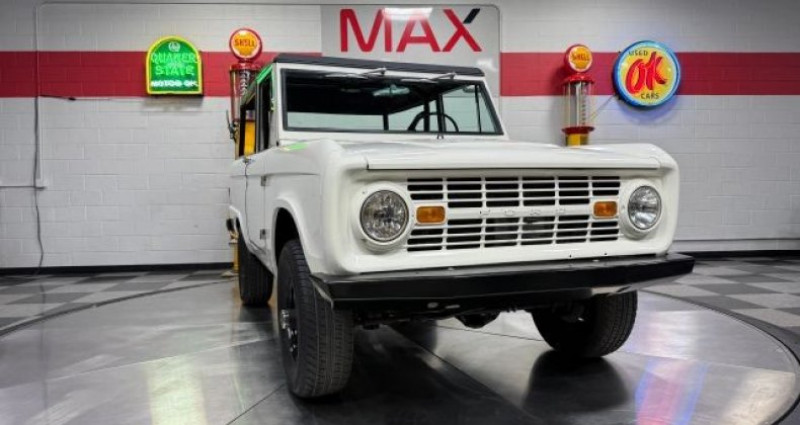 - Marque : Ford - Modèle : Bronco - Année : 1968 - Numéro d'inventaire : V1770 - Couleur extérieure : Blanc - Couleur intérieure : Noir - Transmission : Automatique - Mileage : 0 - Moteur : Swap de moteur 5.0 V-8 de 1989 Mustang - Radiateur : Aluminium amélioré - Échappement : Magnaflow - Capot : Neuf, moins de 18 mois - Baguettes arrière de roues : Peintes en blanc - Bumper avant et arrière : Bumper robustes après-marché - Radio : Retrosound après-marché avec Bluetooth - Speakers : Après-marché - Essieu avant : Non installé, Bronco actuellement 2 roues motrices - Pneus : 15 pouces en acier - 5e roue de secours : Robuste après-marché. Provenance : Pennsylvania. Disponibilité : environ 7 semaines, clés en main. 62 000 € tout compris (importation, taxes, procédure d'immatriculation). Annonce publiée le 26/12/2025