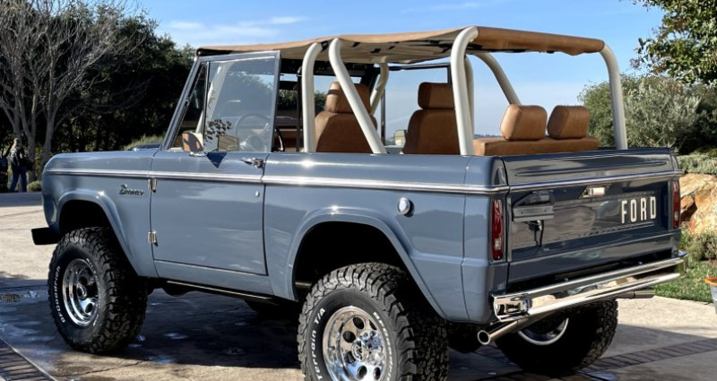 - Marque : Ford - Modèle : Bronco - Année : 1969 - Couleur : AHI BLUE - Type de carrosserie : Convertible - Moteur : 5.0L 302 V8 - Boîte de vitesses : Automatique - État : Restauration récente - Lift : 2.5 avec Bilstein Shocks - Transmission : Dana 20, Dana 44 Avant, 9 Ford arrière - Tuyaux d'échappement : Neuf - Système de refroidissement : Mise à jour complète - Air conditionné : Oui, avec Vintage Air - Fenêtres électriques : Oui - Portes rabattables latérales : Oui, avec pas de marchepieds - Système de levage du capot : Hydraulique - Volant personnalisé - Roues : Mickey Thompson - Pneus : 33x12.5 - Barre de sécurité : Oui - Siège : Sièges de baseball, rembourrés de cuir, réglables - Système audio : Non mentionné - État du véhicule : Pristine - Titre propre : Oui - Vendeur : Entreprise de restauration (non concessionnaire). Provenance : California. Disponibilité : environ 7 semaines, clés en main. 108 000 € tout compris (importation, taxes, procédure d'immatriculation). Annonce publiée le 29/12/2025
