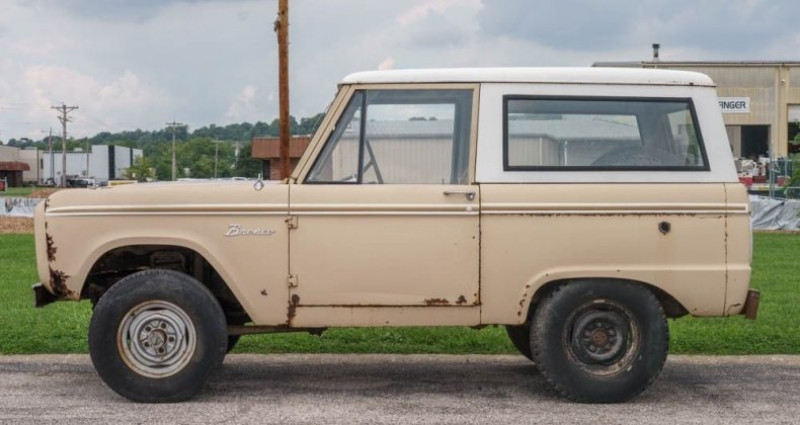 - Marque : Ford - Modèle : Bronco - Année : 1965 - Numéro de stock : C00461 - Couleur extérieure : Sahara Beige (code H) - Couleur intérieure : Tan - Type de carrosserie : SUV - Transmission : Boîte de vitesses manuelle à 3 vitesses et 3.20:1 gearing avec Dana 20 transfer case et Dana 30 axe avant - Moteur : 170 CID 12-cylindres en ligne - Kilométrage : 98 635 - Propulsion intégrale : Oui - État : Projet - Pneus : 275/75R15 à tous les quatre coins - VIN : U15FL733163 - Emplacement : St. Louis, Missouri (États-Unis). Provenance : Missouri. Disponibilité : environ 7 semaines, clés en main. 28 500 € tout compris (importation, taxes, procédure d'immatriculation). Annonce publiée le 30/12/2025