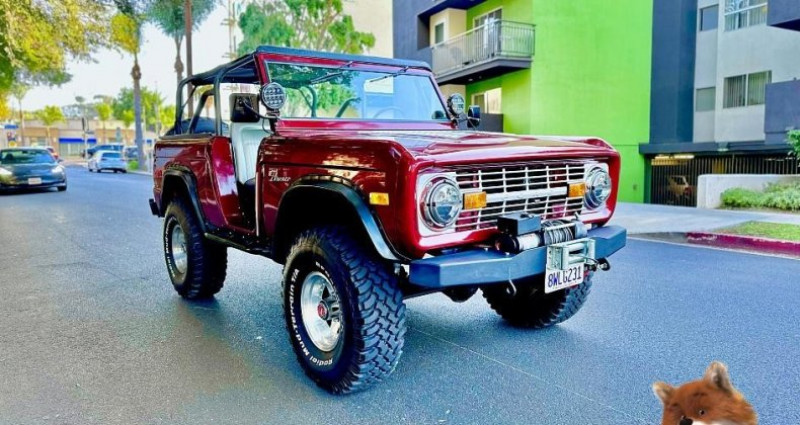 - Marque : Ford - Modèle : Bronco - Année : 1976 - Couleur extérieure : Burgundy - Couleur intérieure : Gris - Type de carrosserie : SUV - Transmission : Manuelle - Moteur : 302 cubic inch V8 - Drivetrain : 4X4 - Kilométrage : 18 938 miles (environ 30 500 km). Provenance : California. Disponibilité : environ 7 semaines, clés en main. 90 000 € tout compris (importation, taxes, procédure d'immatriculation). Annonce publiée le 31/12/2025