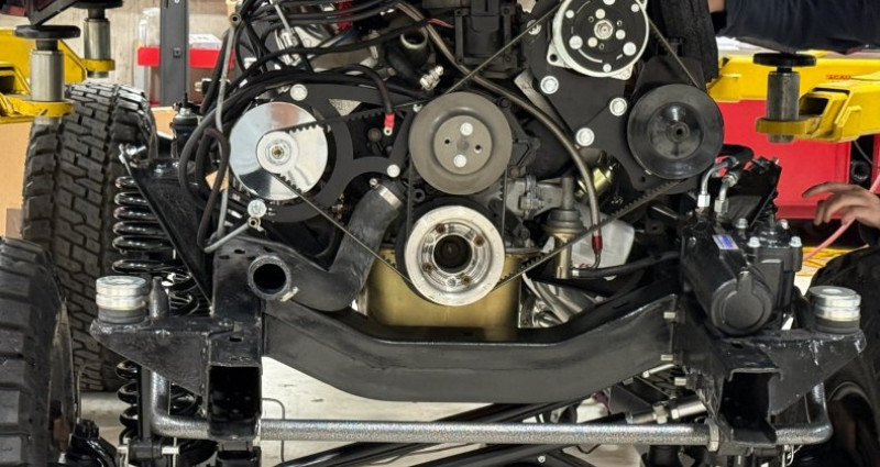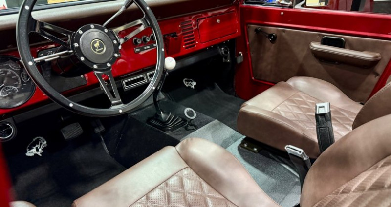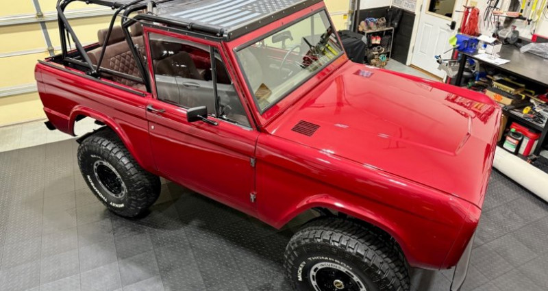 - Marque : Ford - Modèle : Bronco U13 - Année : 1966 - VIN : U13FL755499 - Couleur : Rouge Land Rover - Moteur : 351 Windsor - Boîte de vitesses : C4 automatique - Suspension : James Duff Tuff, Torque Tamer, Heim steer bump steer eliminator, 1 inch body lift - Freins : Alimentation électrique - Roues : Incubus Offroad, 15x8, (ET -27) - Équipement supplémentaire : Aluminium Ford Racing Air Cleaner, Edelbrock E-Street Aluminum Heads, Edelbrock Performer RPM Aluminum Intake, Edelbrock AVS2 Carb, SBF Roller Rockers, Amp Research power running boards, Borgeson Close ratio power steering gearbox, Aluminum radiator, Power Steering, Power brakes, Long Tube Headers, Magnaflow exhaust, Painless wiring, MSD Ignition, Vintage Air / Gen 5, Black Bumpers, Chrome lift off door hinges, New door handles & locks, New door interior parts, Custom door panels, New Glass all around avec tint, Mickey Thompson Baja 35/12.50/r15, James duff hood struts, Emergency brake cables, Incubus Offroad Wheels, LED Lighting extérieur et intérieur, roll bar, deux ensembles de clés avec console, Binder contenant tous les récépissés de la restauration.. Provenance : Virginia. Disponibilité : environ 7 semaines, clés en main. 99 000 € tout compris (importation, taxes, procédure d'immatriculation). Annonce publiée le 03/01/2026