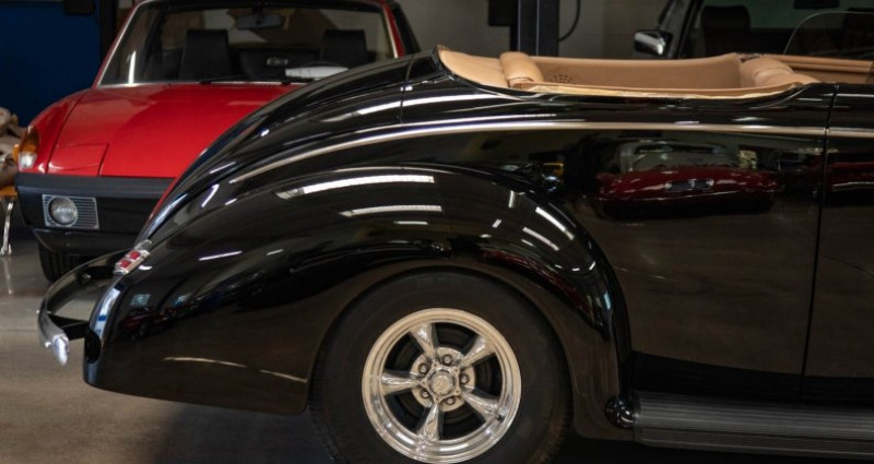 Voici un véhicule unique en son genre : un Street Rod de 1940, modifié de manière expansive, construits sur un châssis personnalisé, équipé d'une carrosserie fiberglass de Westcott et d'un moteur V8 Ford 302ci, avec transmission automatique C4 et arrière Ford 8 équipé de modernisations comprenant le freinage assisté, freinage à disque avant, climatisation, ouverture automatique des portes et fenêtres électriques. Le toit est un toit à ouvrir removable en tissu Hartz. Le véhicule est peint en noir et les sièges sont en beige et marron. Les spécifications incluent également un moteur de 302ci V8 (1987-1991, numéro moteur E7TE), une carburateur à quatre barrel Edelbrock 1406, freins de disque avant et de tambour arrière, deux exhausteurs Flowmaster, roues American Racing 15 pouces avec pneumatiques Pirelli à l'avant et à l'arrière et des barres de stabilisateurs nouveaux. Les plans de ce Street Rod offrent un détail minutieux, y compris les plaques d'identification et les documents de maintenance récents. Il est à noter que les inspections de mécanique sont admises et que l'acheteur doit effectuer une inspection avant de placer une enchère. La vente de ce véhicule est considérée comme un achat en état comme c'est et sans aucune garantie implicite ou donnée.. Ce descriptif est basé sur les éléments communiqués par le propriétaire avec un traitement assisté. Merci pour votre indulgence en cas de formulation perfectible. Provenance : California. Disponibilité : 7 semaines, clés en main. 62 500 € tout compris (importation, taxes, procédure d'immatriculation). Annonce publiée le 02/10/2025