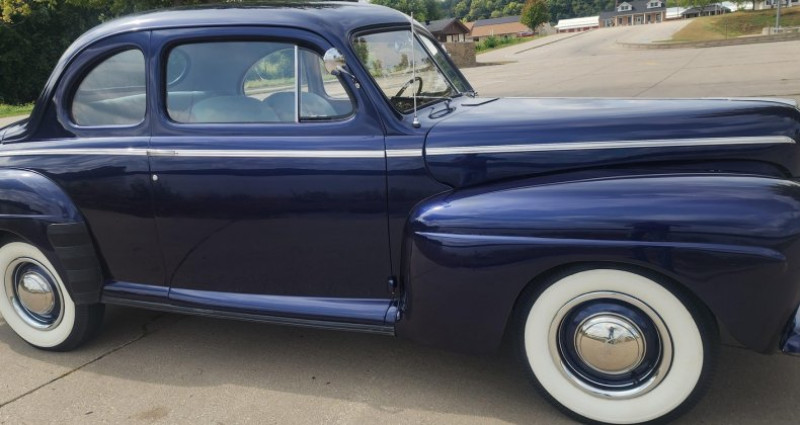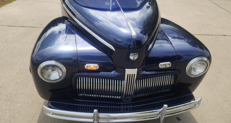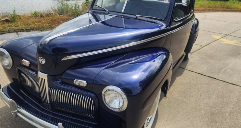 Ce 1942 Ford Deluxe Coupe a été restauré à partir du cadre et présente un aspect magnifique avec sa teinture Washington Blue métallisée. L'habitacle a bénéficié d'une restauration complète, y compris du bois d'ornement professionnel, ainsi que de nouvelles jantes X15 blanches de 670 mm et des pare-chocs en chrome neufs. L'intérieur a été remis à neuf avec les matériaux originaux et le patronage de coussin. Toutes les jauges originales sont renforcées et fonctionnent correctement, y compris la radio. Le véhicule a été mis à niveau avec de nouveaux pneus, des pare-chocs en chrome neufs et des vitres de porte avec une entaille. Bien qu'il ait été restauré avec soin, il est important de noter que l'une des vitres de la porte a une entaille.. Ce descriptif est basé sur les éléments communiqués par le propriétaire avec un traitement assisté. Merci pour votre indulgence en cas de formulation perfectible. Provenance : Iowa. Disponibilité : 7 semaines, clés en main. 31 000 € tout compris (importation, taxes, procédure d'immatriculation). Annonce publiée le 05/10/2025